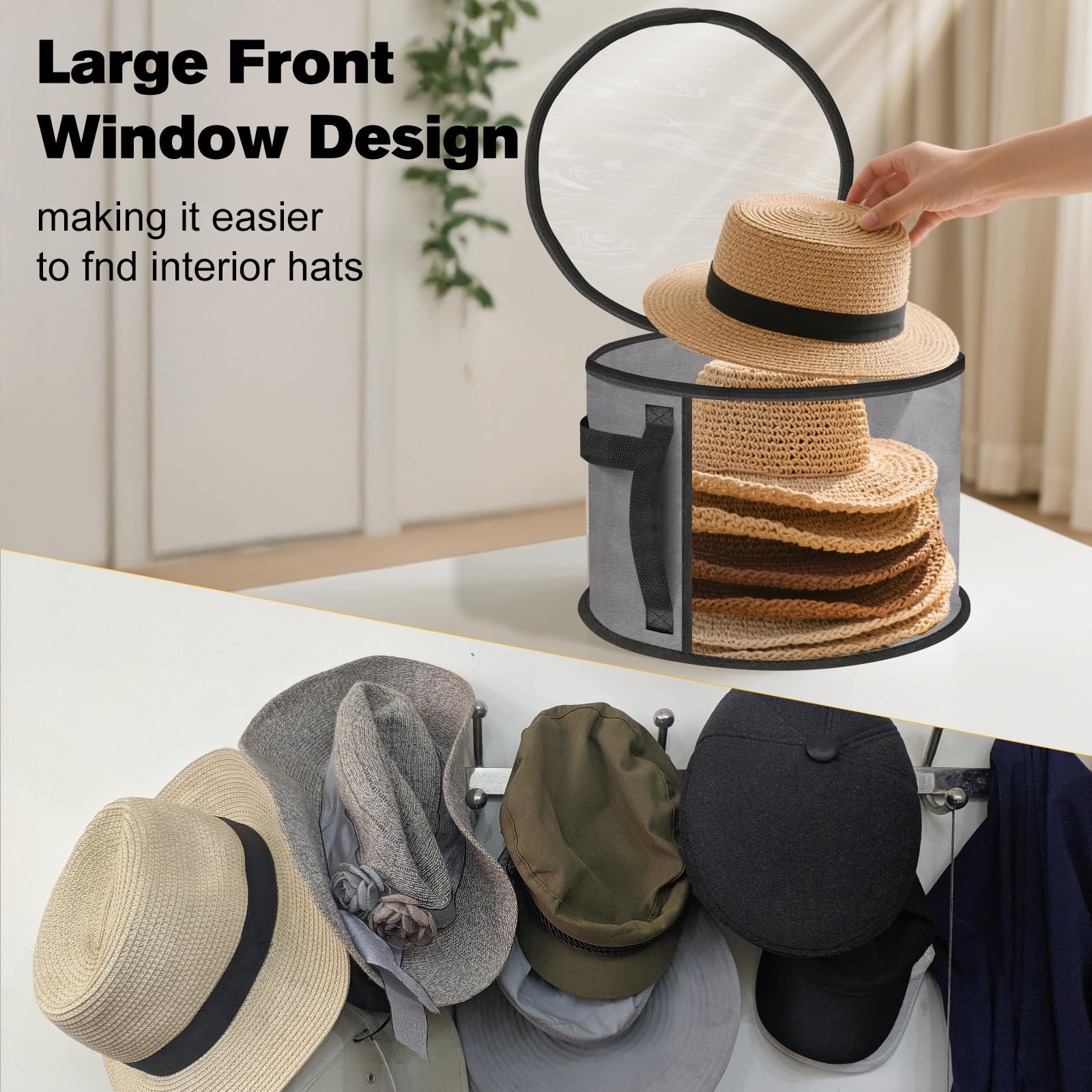 【CLEAR WINDOW FOR EASY VIEWING】The Transparent Top And Front Panels Of This Hat Box With Clear Window Let You Quickly Identify And Select Your Hats Without Opening The Case. A Great Solution For Organizing Your Hats With Ease As a Hat Storage Organizer For Men & Women