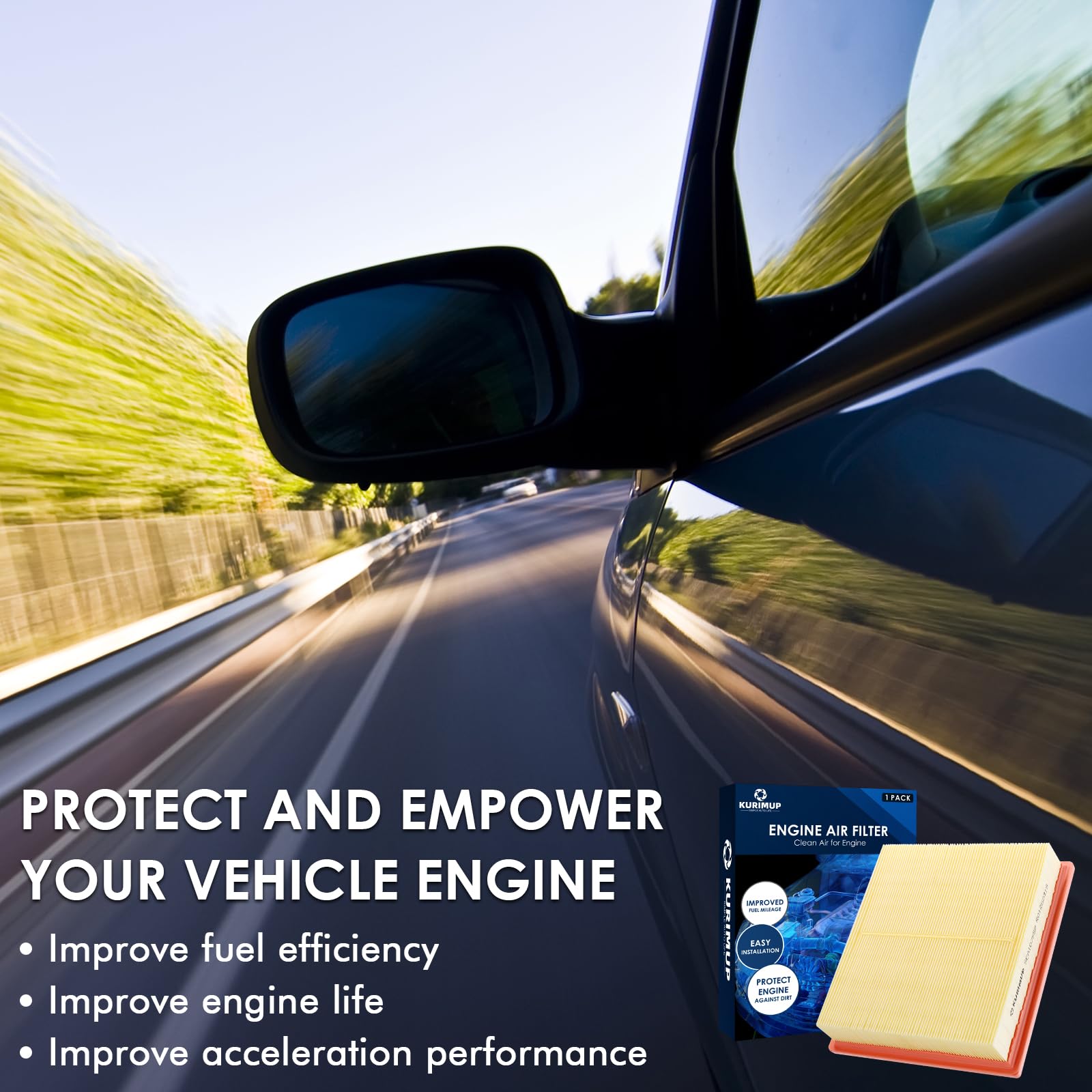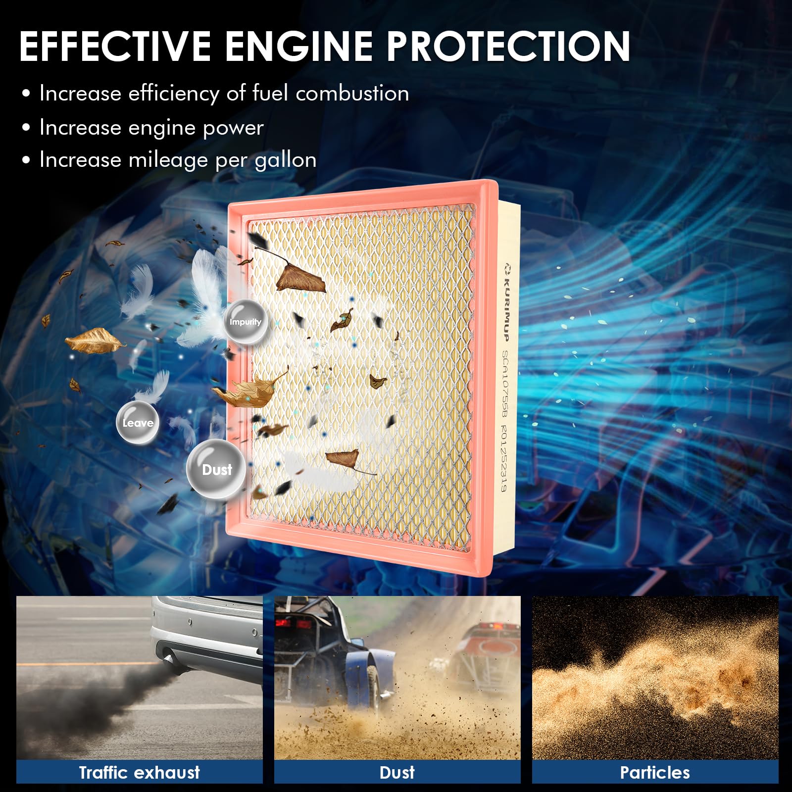 [99% Air Purification] KURIMUP engine air filter is made of high-density, high-capture ability, and high-breathable fabric material. It reliably filters out 99% of impurities in air and provides larger volume clean airflow for engine, then increases efficiency of fuel combustion, mileage per gallon and optimizes engine power.