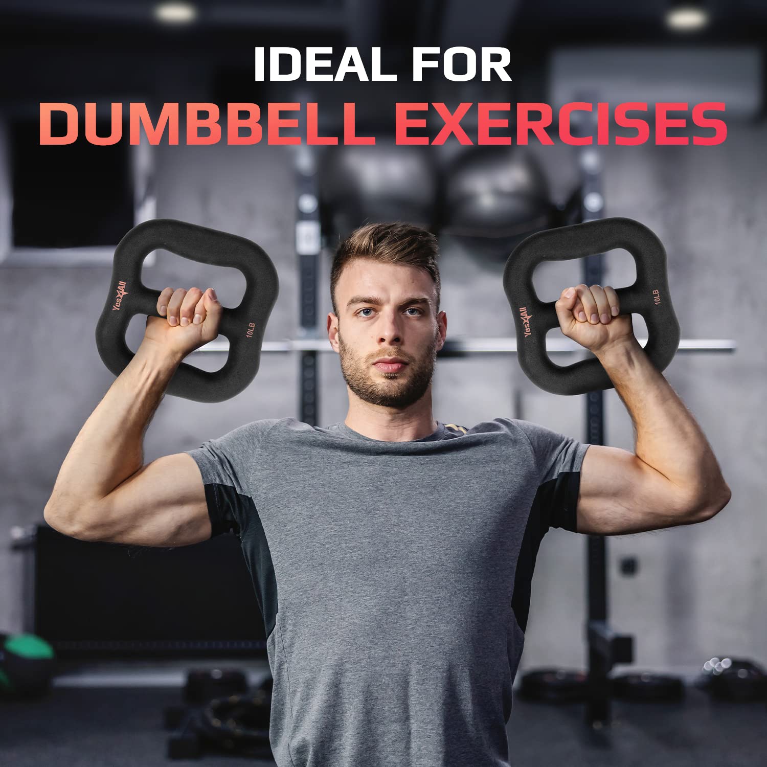DURABLE CAST IRON CORE: This multifunctional dumbbell has a quality cast iron core; So it boasts toughness and stability during your training sessions; You can achieve faster workout results with this durable kettlebell fitness gear