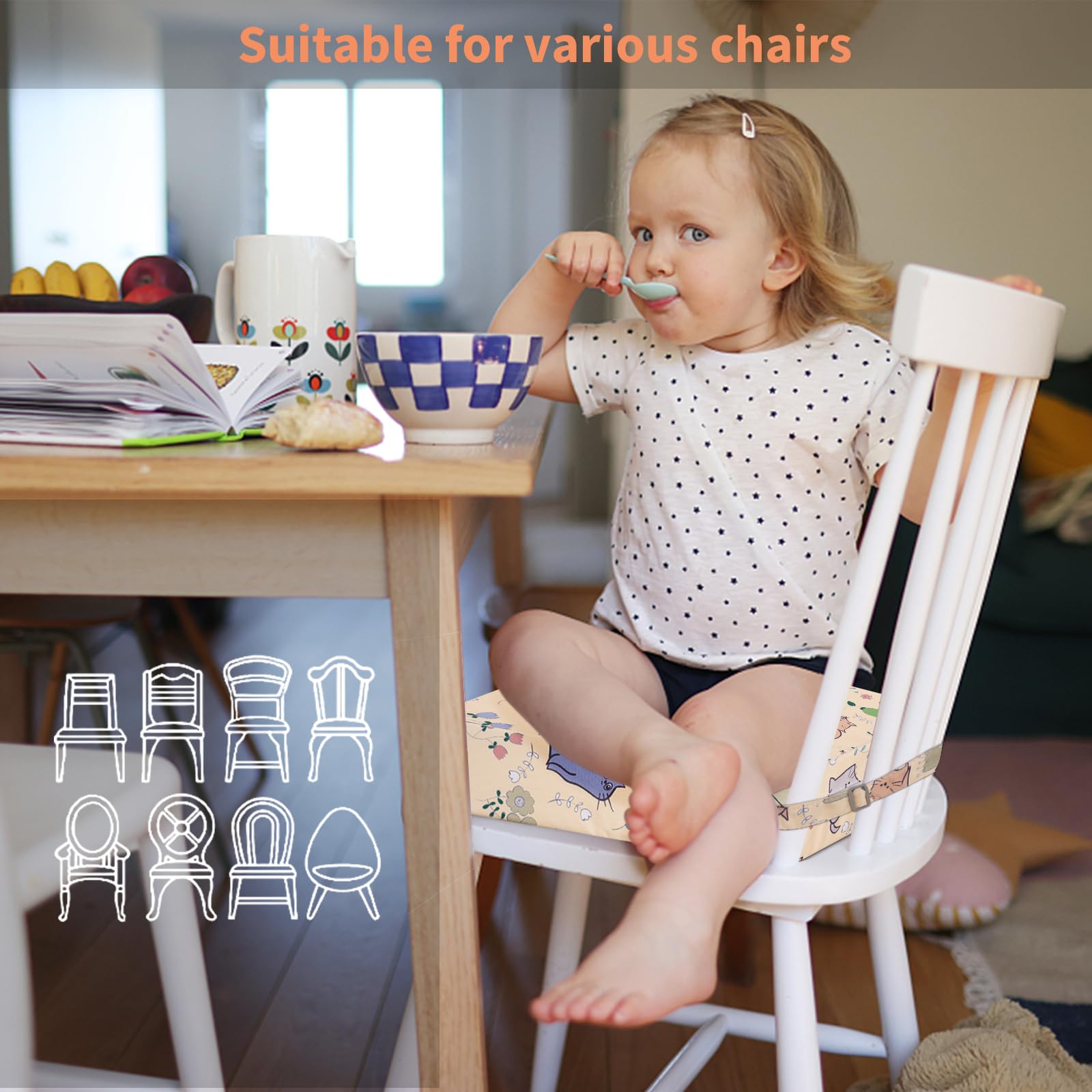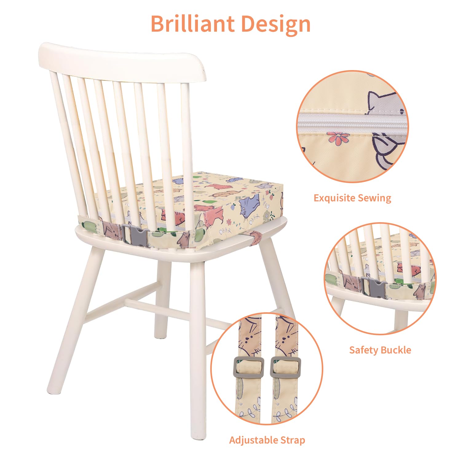Booster Seat for Dining Table, Stronger Support Double Safe Straps Booster Seat for Kitchen Chair, Non-Slip Bottom Portable Travel Chair Cushion for Kids (Beige Cat)