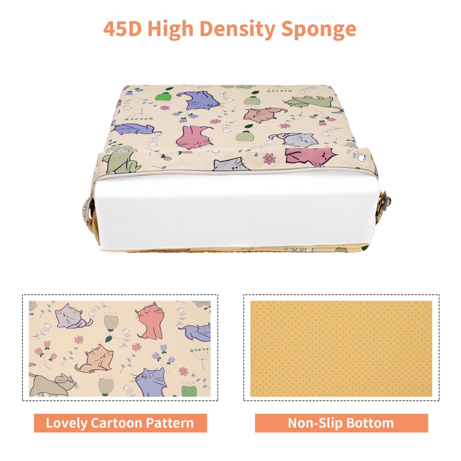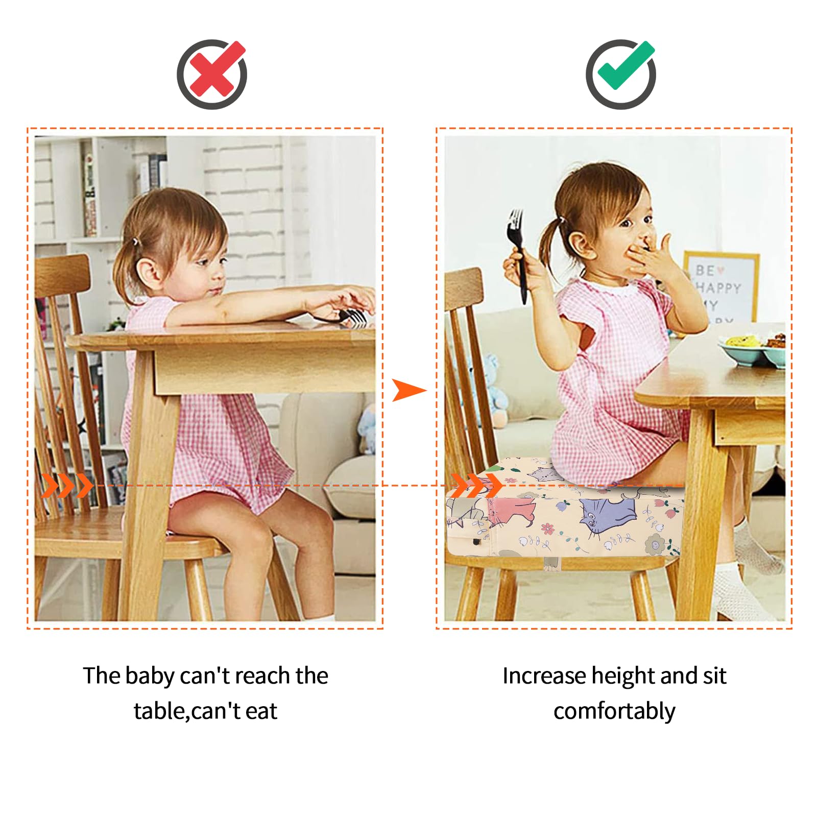 ATTRACTIVE PATTERN: This toddler booster seat for dining table adopts an interesting animal pattern. The colorful patterns of kittens can attract children's attention, and make them quickly like the toddler seat cushion that can help them increase their height
