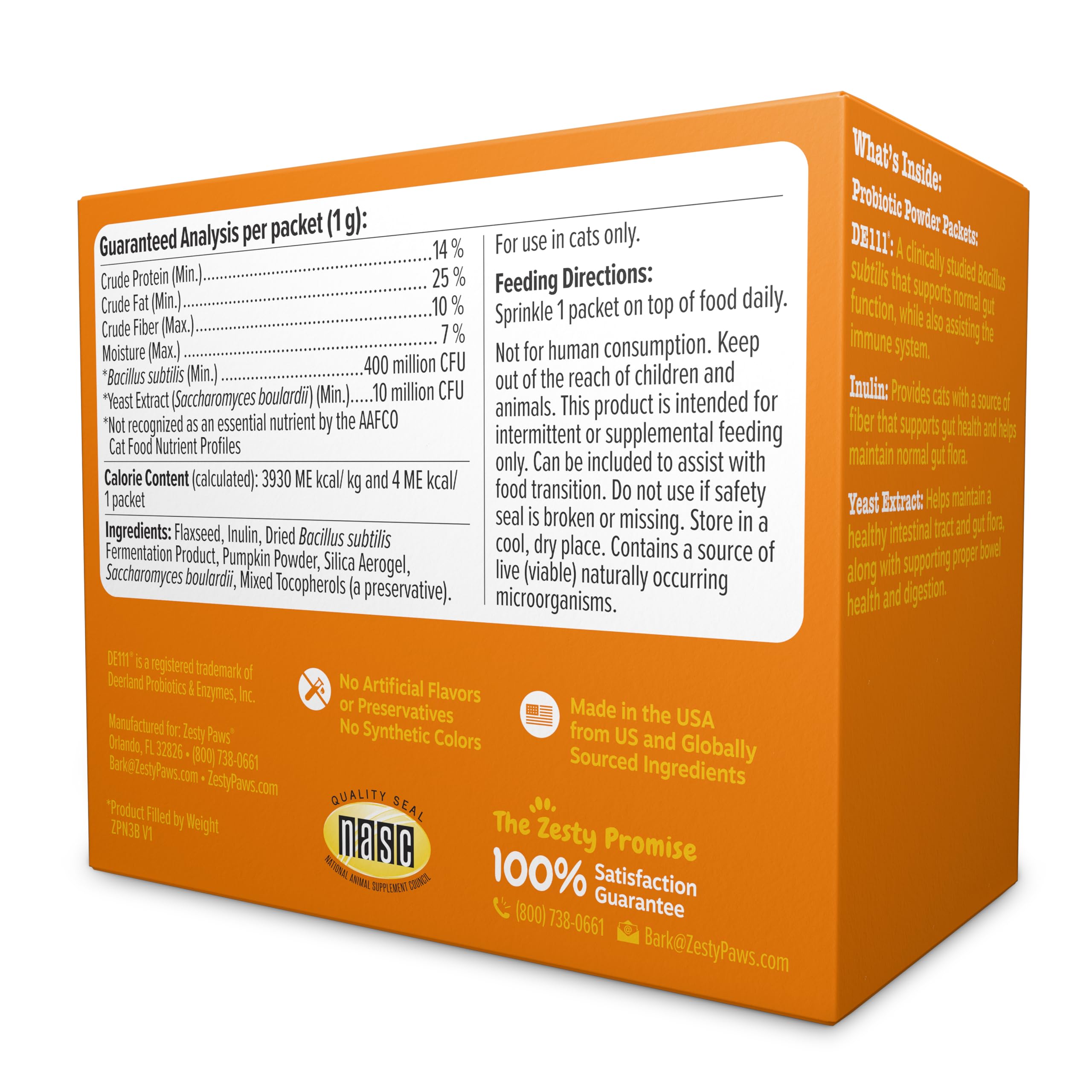 Tummy Support for Your Feline's Tummy! - Zesty Paws Probiotic Powder for Cats combines a premium probiotic with Inulin (fiber for cats) and Yeast Extract to support digestion and immune system function for your cat.