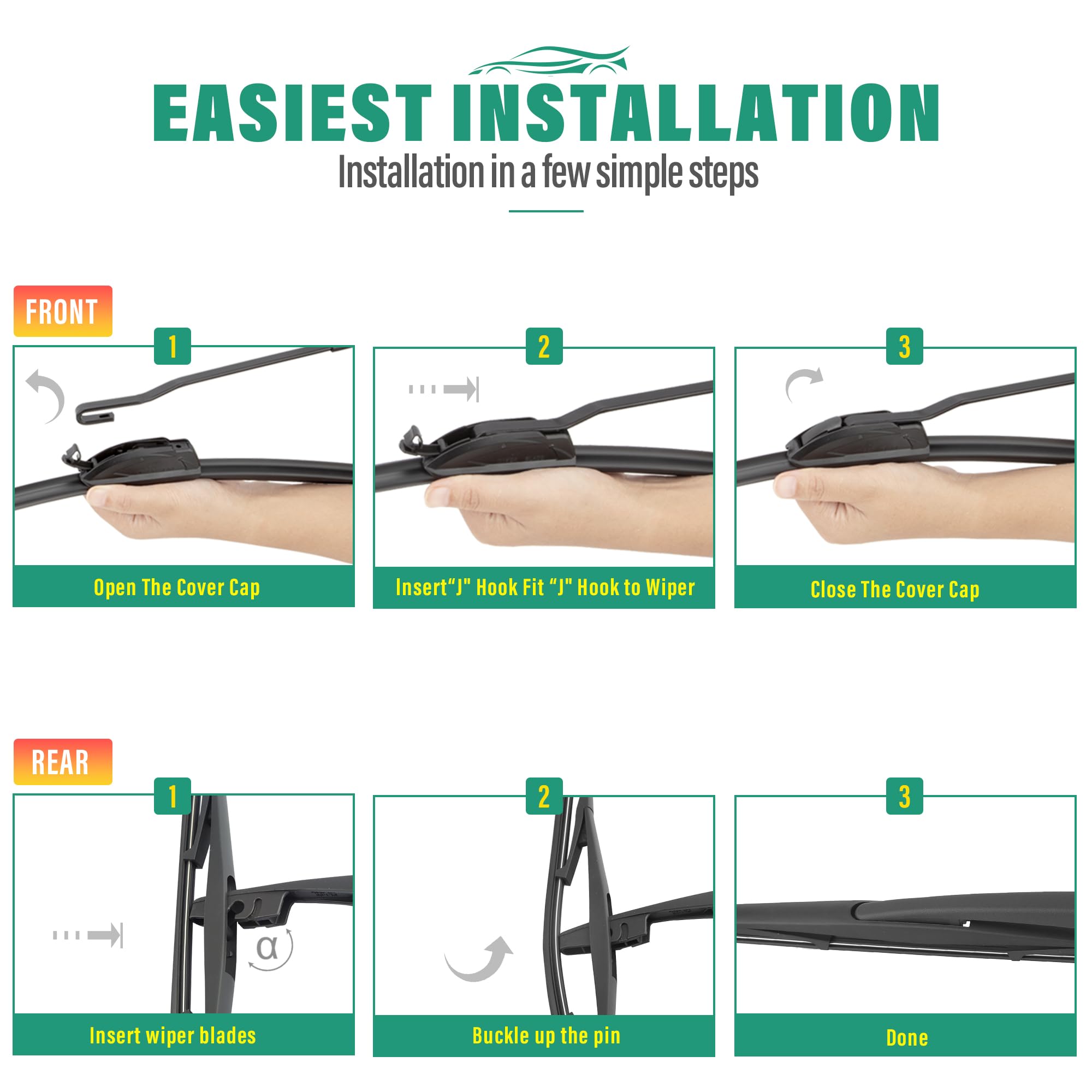 [Super Clear Wipers]: High-quality rubber blade ensures efficient and streak-free wiping.