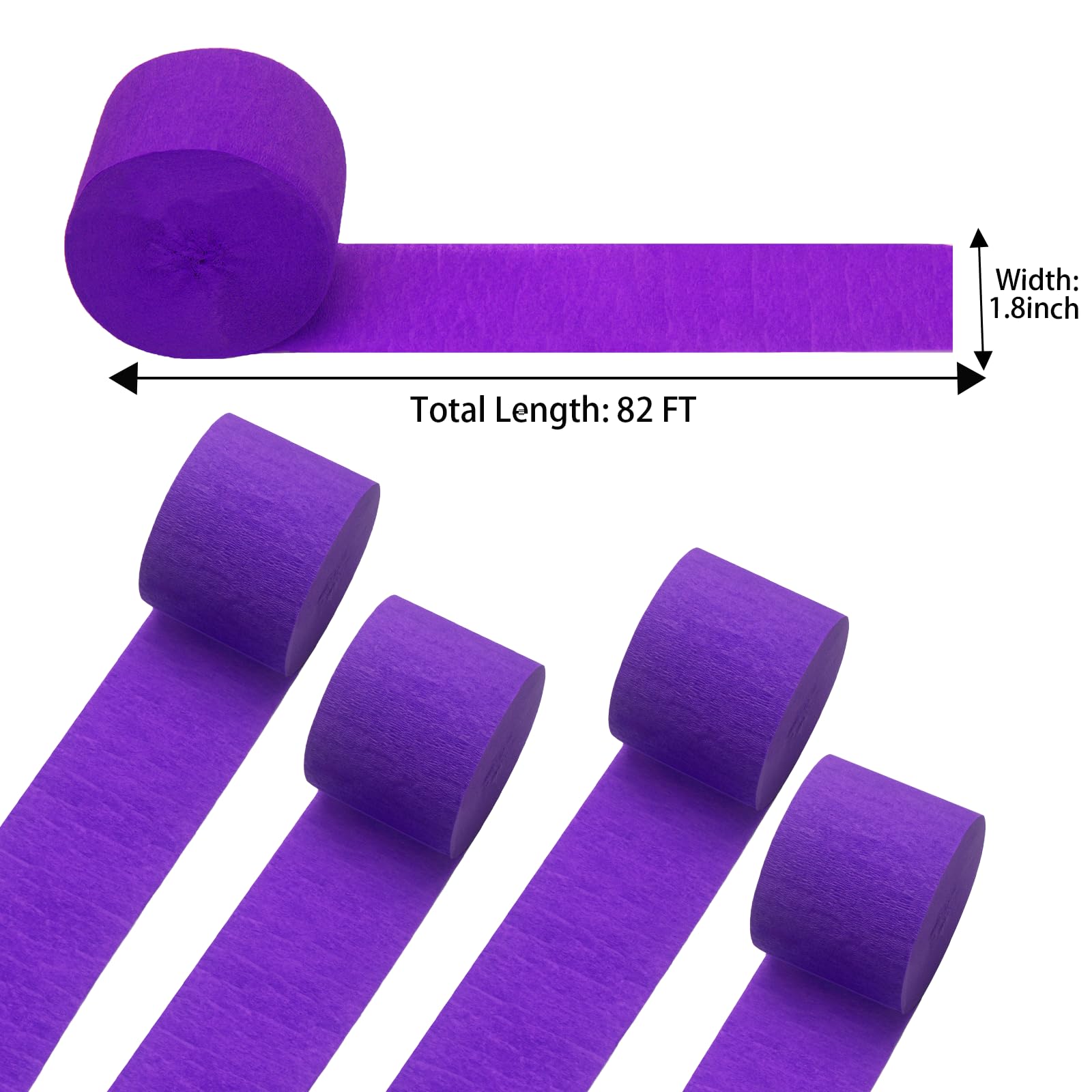 What Will You Get: 4 rolls of Purple Crepe Paper Streamer in total, Each Purple streamer measures 1.8 inch/ 4.5 cm wide and extends to a length of 82 feet/ 25 m long, total 110 yards, Totally enough length for you to use, no need cutting or splicing. Perfect for unicorn party, Purple Crepe Paper Streamers will let your party decor eye-catching, Beautiful Crepe Paper for decorating window doorway, walls Garden, home party, office create a romantic dream party atmosphere. photo booths