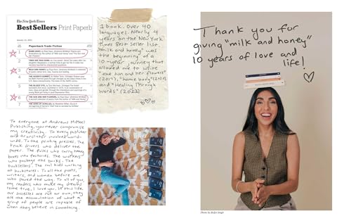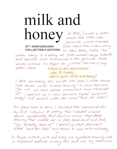 This stunning new hardcover book celebrates the journey of Rupi Kaur and milk and honey. 40 new original poems and 20 new illustrations Full-color, never-before-seen photos and memorabilia Illuminating introduction and handwritten diary entries by Rupi Heartfelt annotations from Rupi and some of today’s most respected voices Since its debut, milk and honey has sold more than 6 million copies globally, becoming the highest-selling book of poetry in the 21st century and propelling Rupi Kaur into the stratosphere as the voice of a generation. milk and honey has taken millions of readers on a shared journey through life’s most emotional moments, reminding us along the way that there is sweetness everywhere, if only we are willing to look. An exceptional volume, the milk and honey 10th Anniversary Collector’s Edition is a must-have keepsake that will be treasured by longtime fans as well as readers new to the work that transformed poetry in our time.