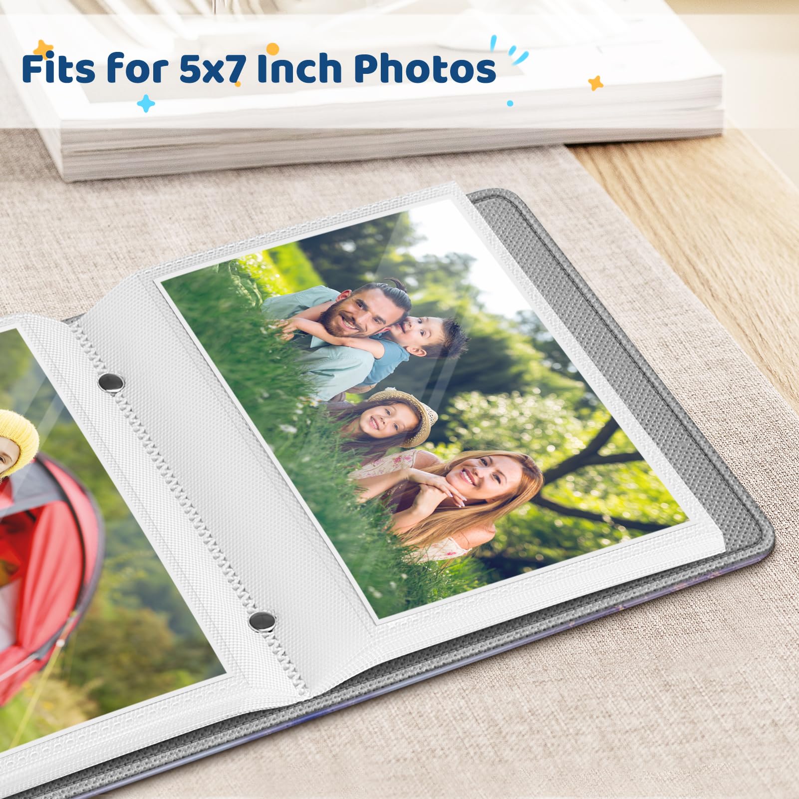 【Compatibility & Capacity】 Only fits for 5x7 Photos. Holds 52 photos in total. This album contains 26 individual pages with 2 inserts per side, opens like a book for easy viewing
