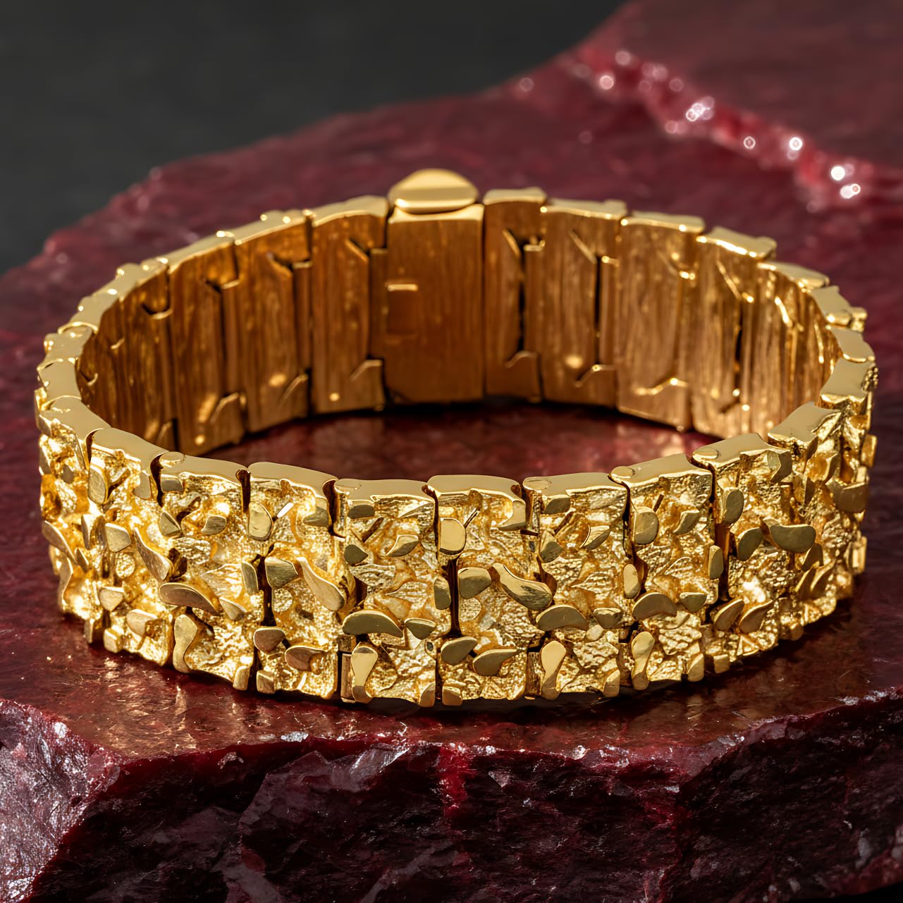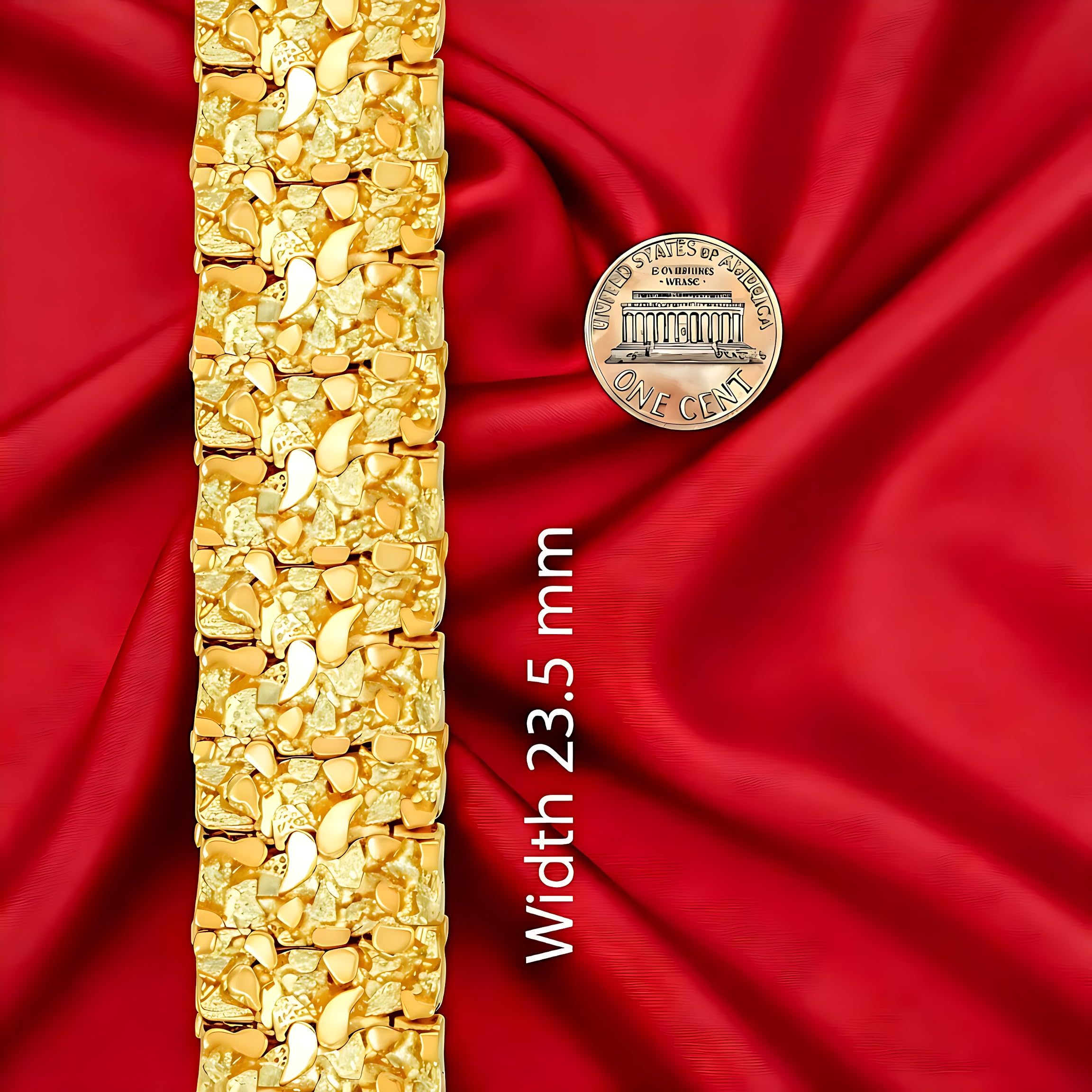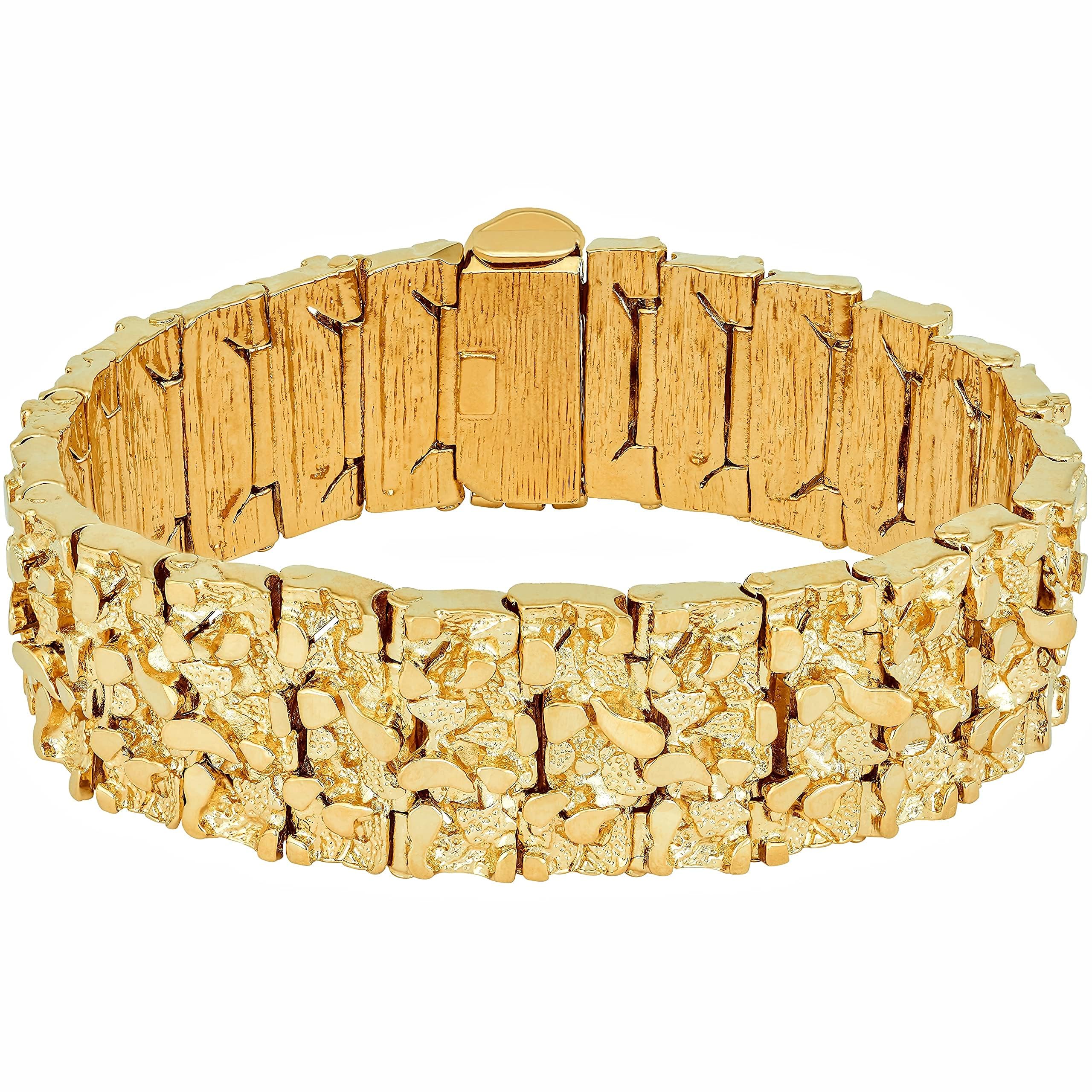 Our Thickest & Boldest Design: Massive 23mm (just under 1 inch) gold nugget bracelet built for maximum presence - our most masculine, heavy, and eye-catching bracelet.