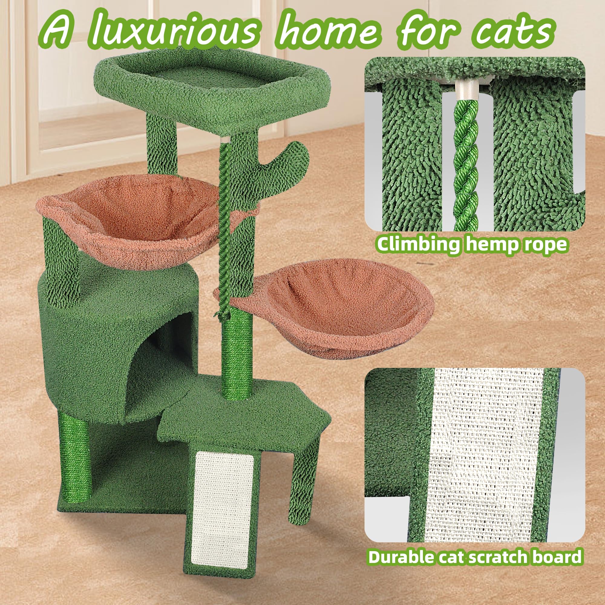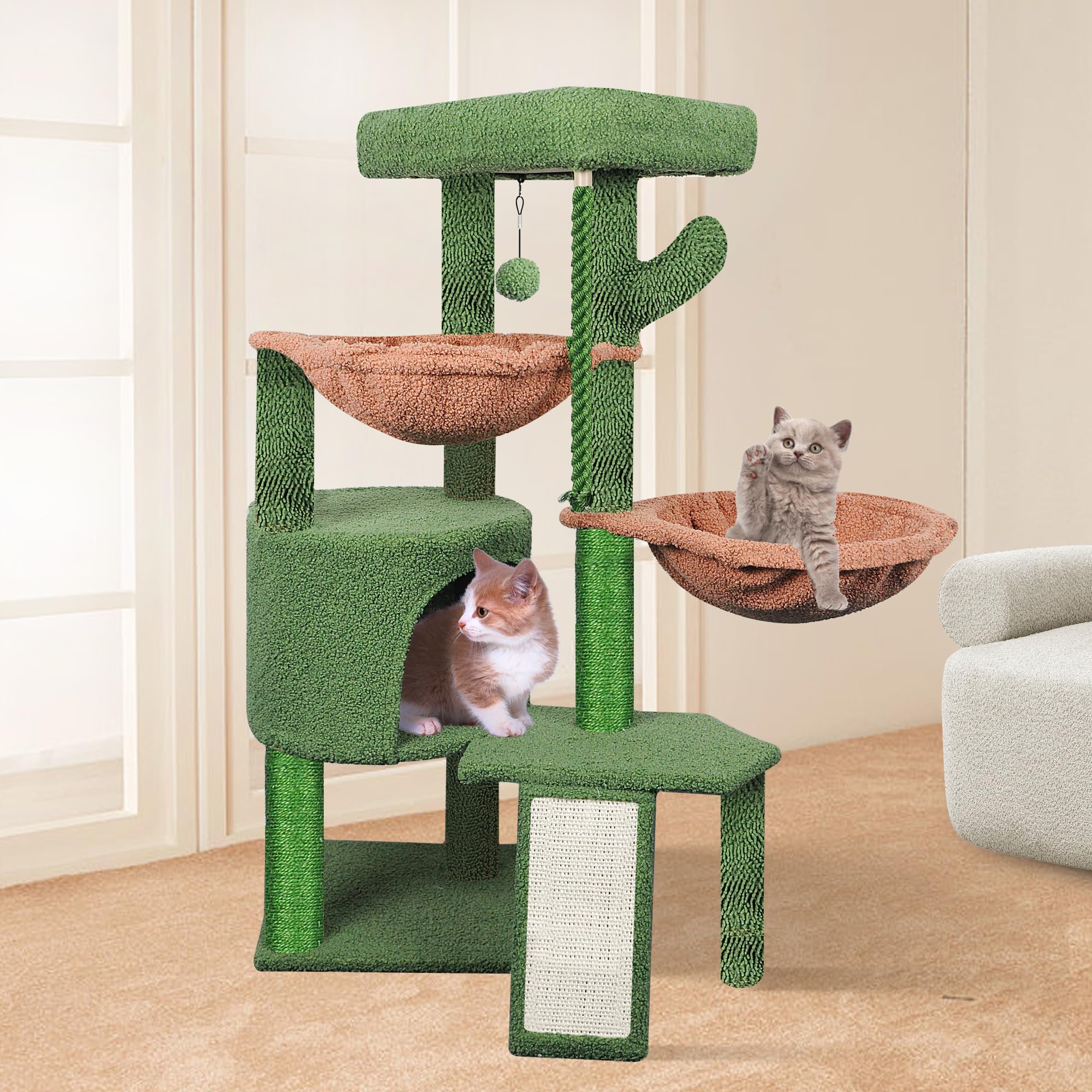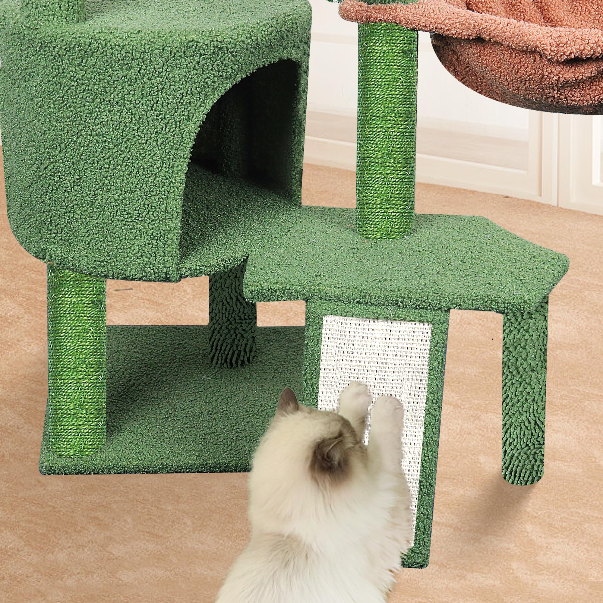 The two hammocks and cat condo can let cats sleep and relax.Notice:Please try to place against the wall.