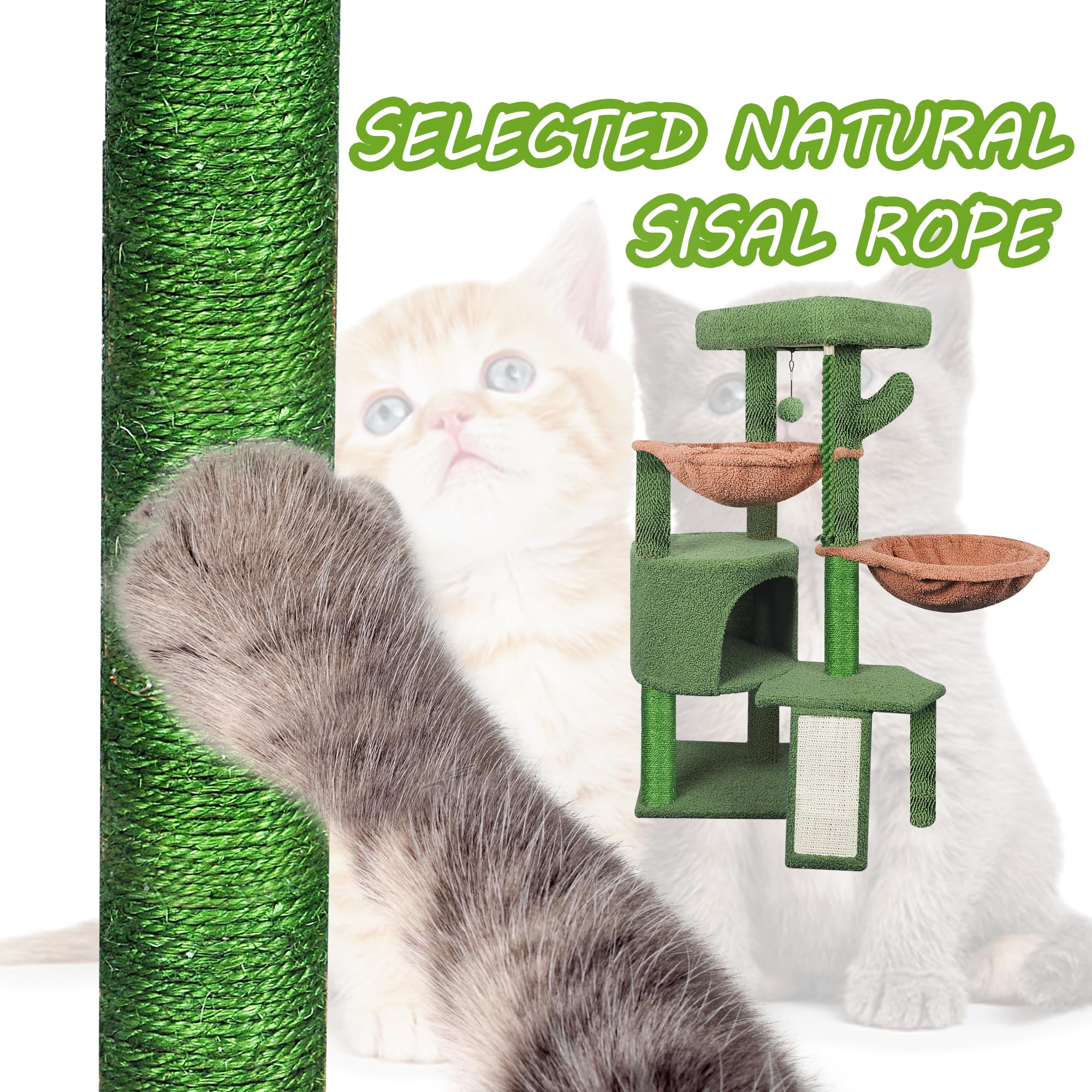 High quality faux fur, natural sisal posts durable for long time scratch by cats.