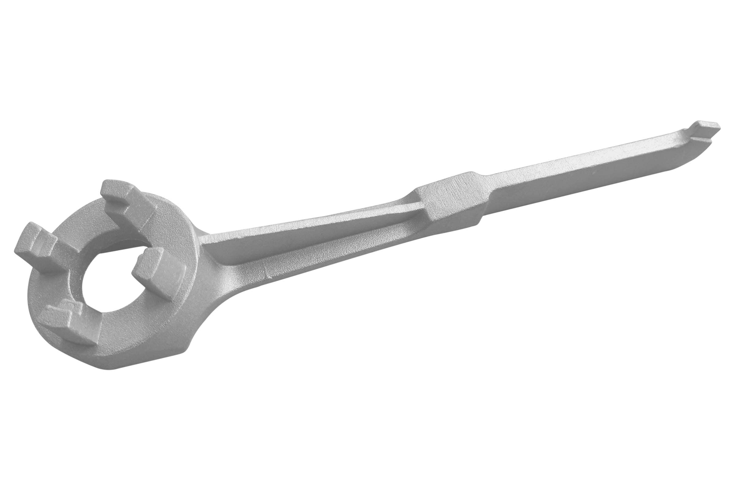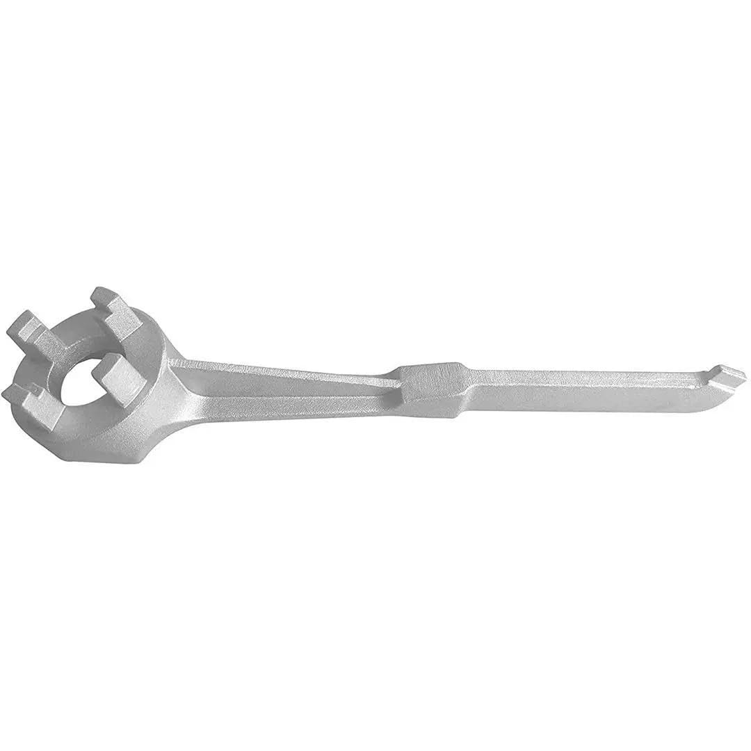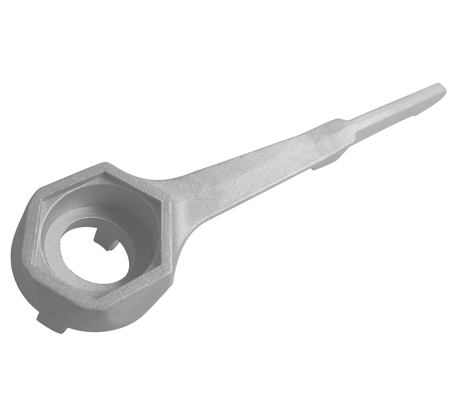 Bung wrench is manufactured from cast aluminum, lightweight (6.3 ounces), no rust.