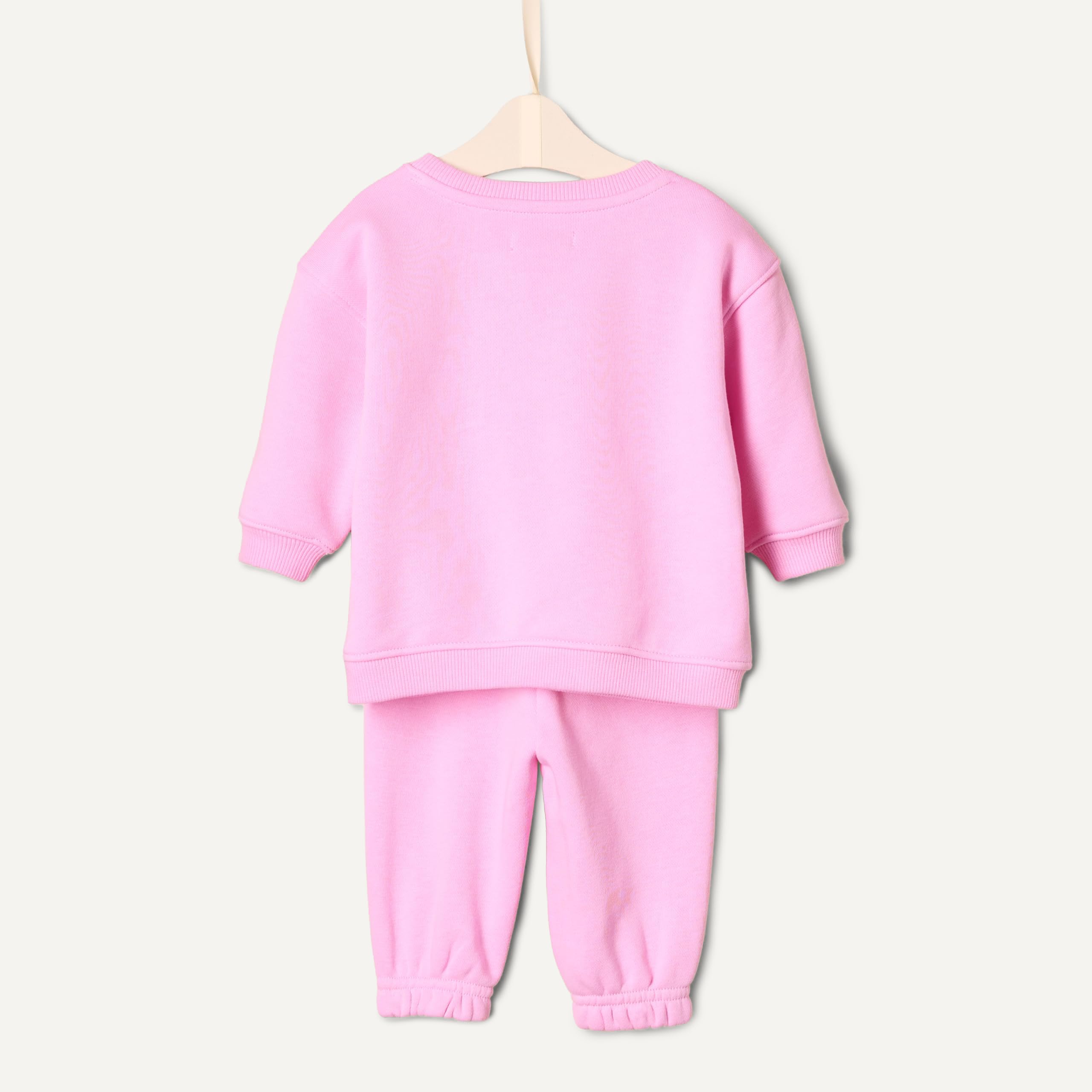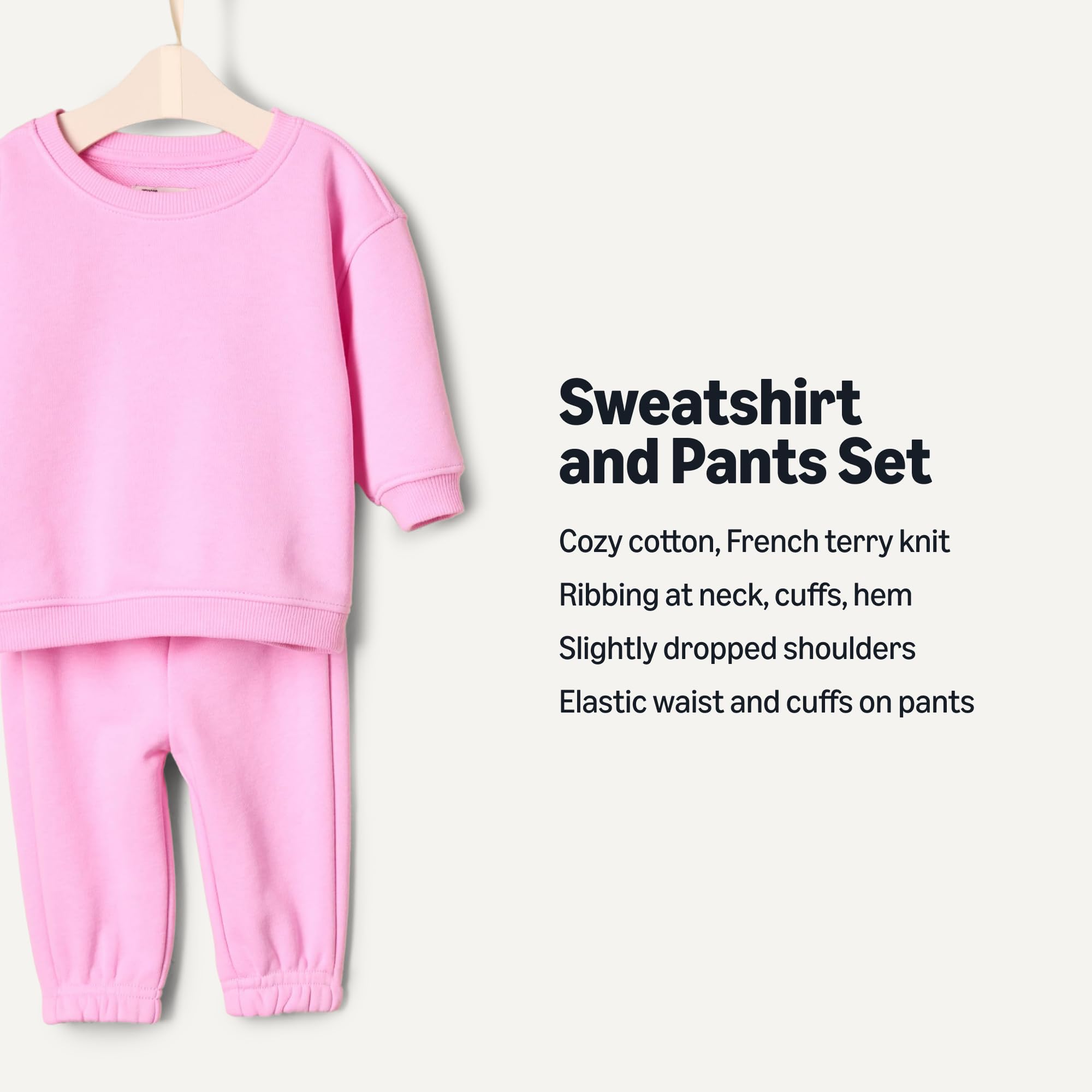 DETAILS: Sweatshirt features slightly dropped shoulder and soft ribbing at neck, cuffs and hem. Pants feature elastic waist and cuffs