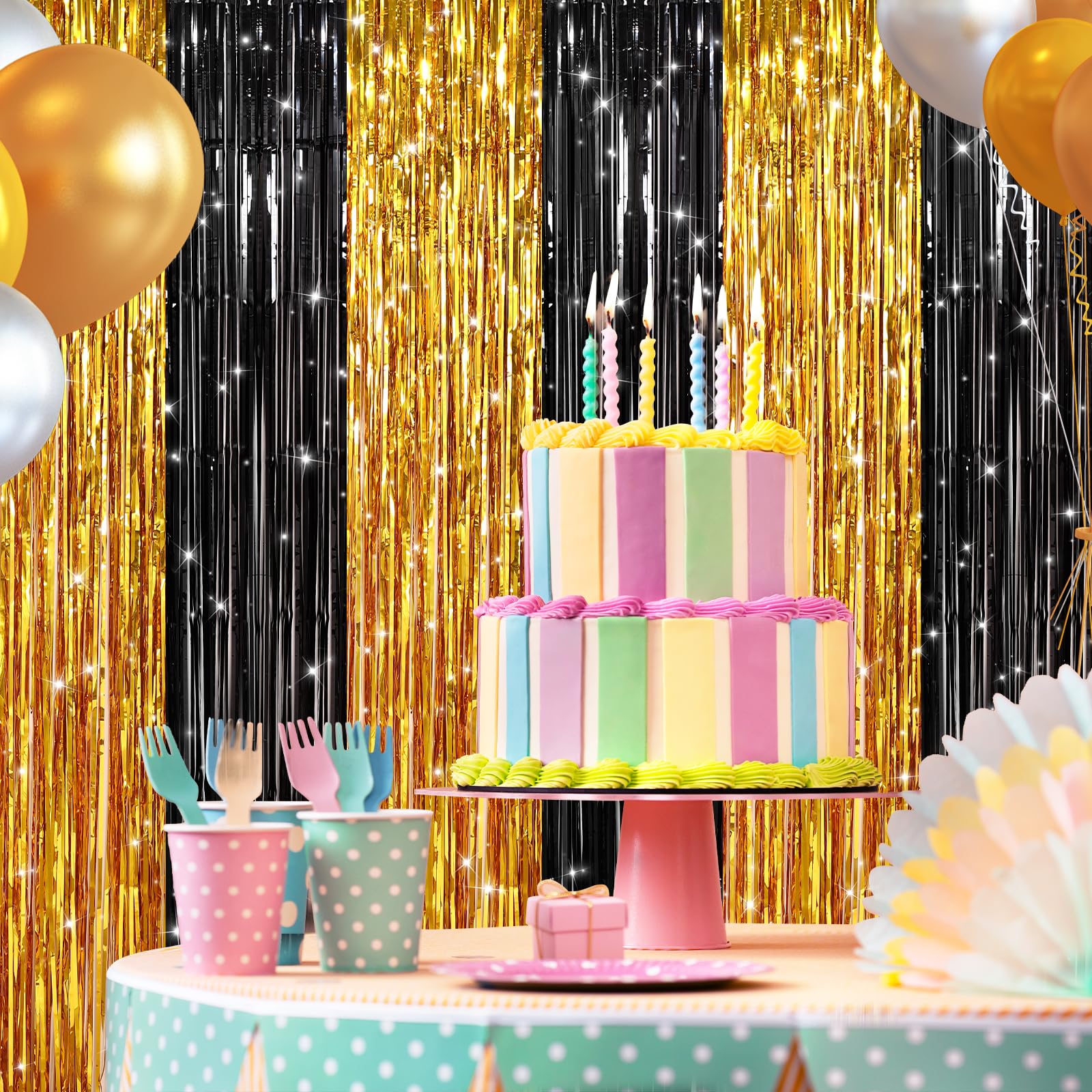 Wonderful Decoration: The glittering foil fringe curtains are not only eye-catching but also versatile; hang them as a backdrop, adorn your entrance, or pair them with LED lights, balloons, and photo props for a truly memorable experience.