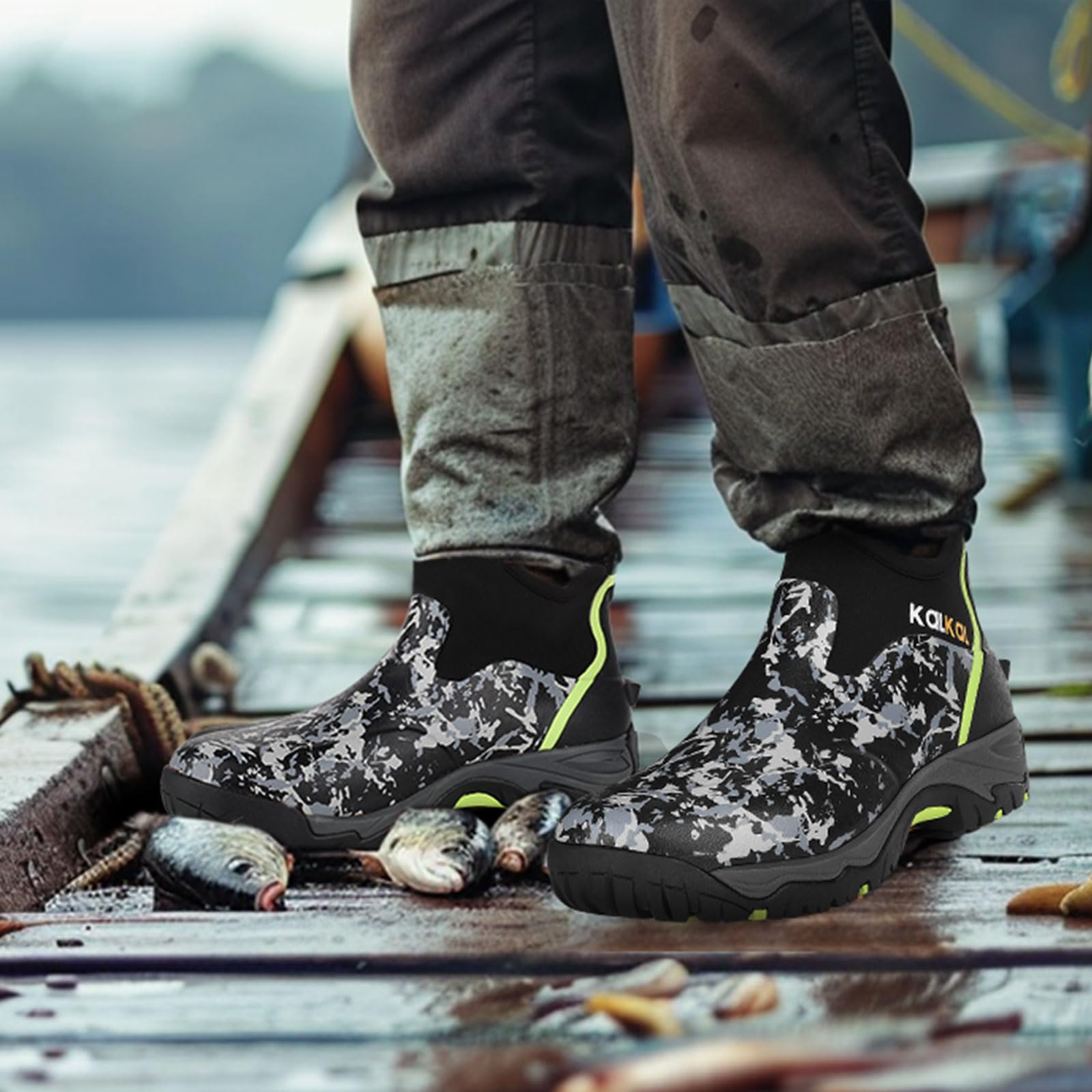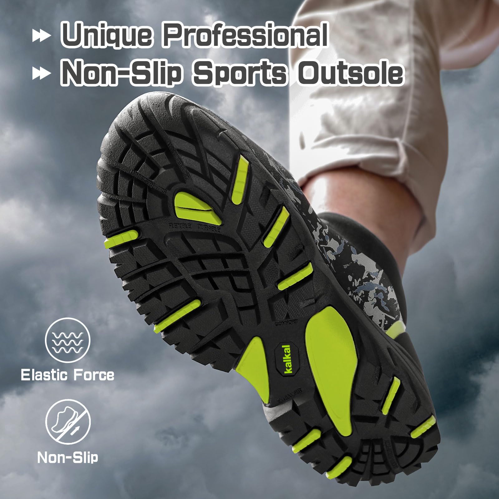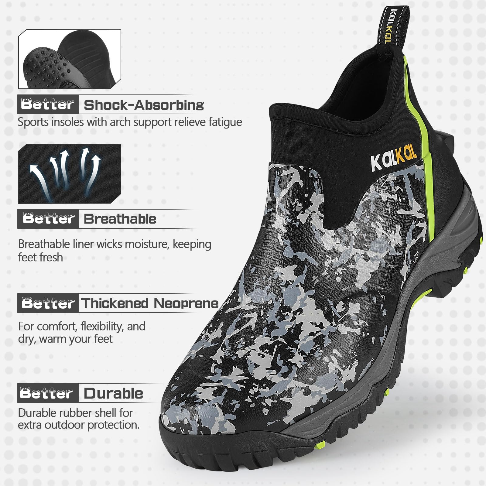 🍂🍂Thoughtful Boots Opening Design: The opening of KALKAL men boots features quick-drying, wear-resistant fabric edging that is skin-friendly, and the pure neoprene at the front and back ensures soft, comfortable ankles while squatting or walking. Reflective webbing adds safety