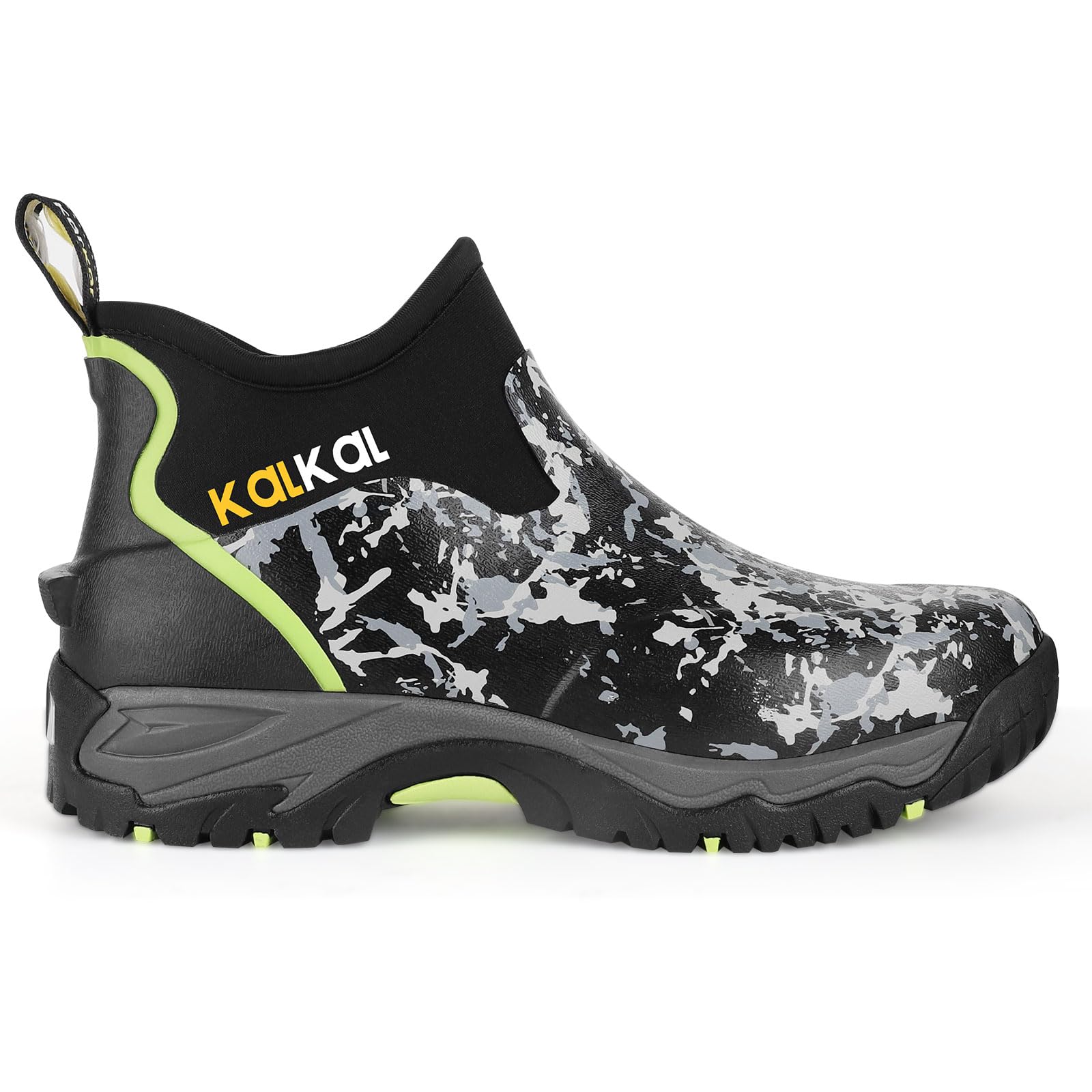 🍂🍂Superior Traction: KALKAL waterproof ankle rain boots feature EVA+rubber soles and high-traction outsoles, Independent shock absorption enhances outdoor performance, offering excellent slip resistance on rugged, muddy, weedy yards, wooden decks, and smooth roads