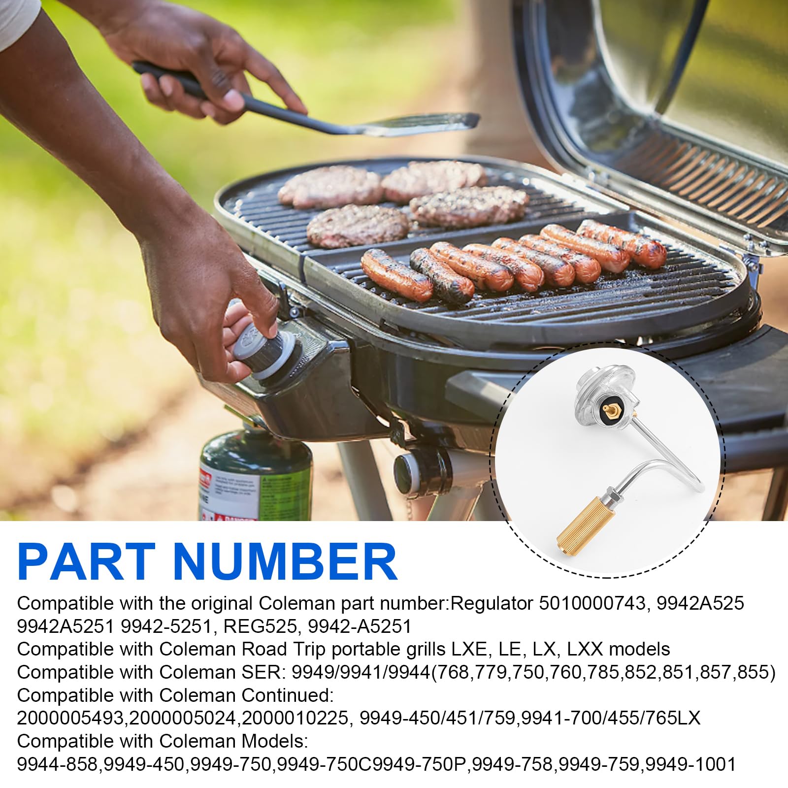 𝐏𝐥𝐞𝐚𝐬𝐞 𝐍𝐨𝐭𝐞: 5010000743 Gas Regulator replacement for Coleman Roadtrip grill, including LXE, LXX, LX, LE, Party. DO NOT compatible with other Coleman stove or Fold N Go stoves.