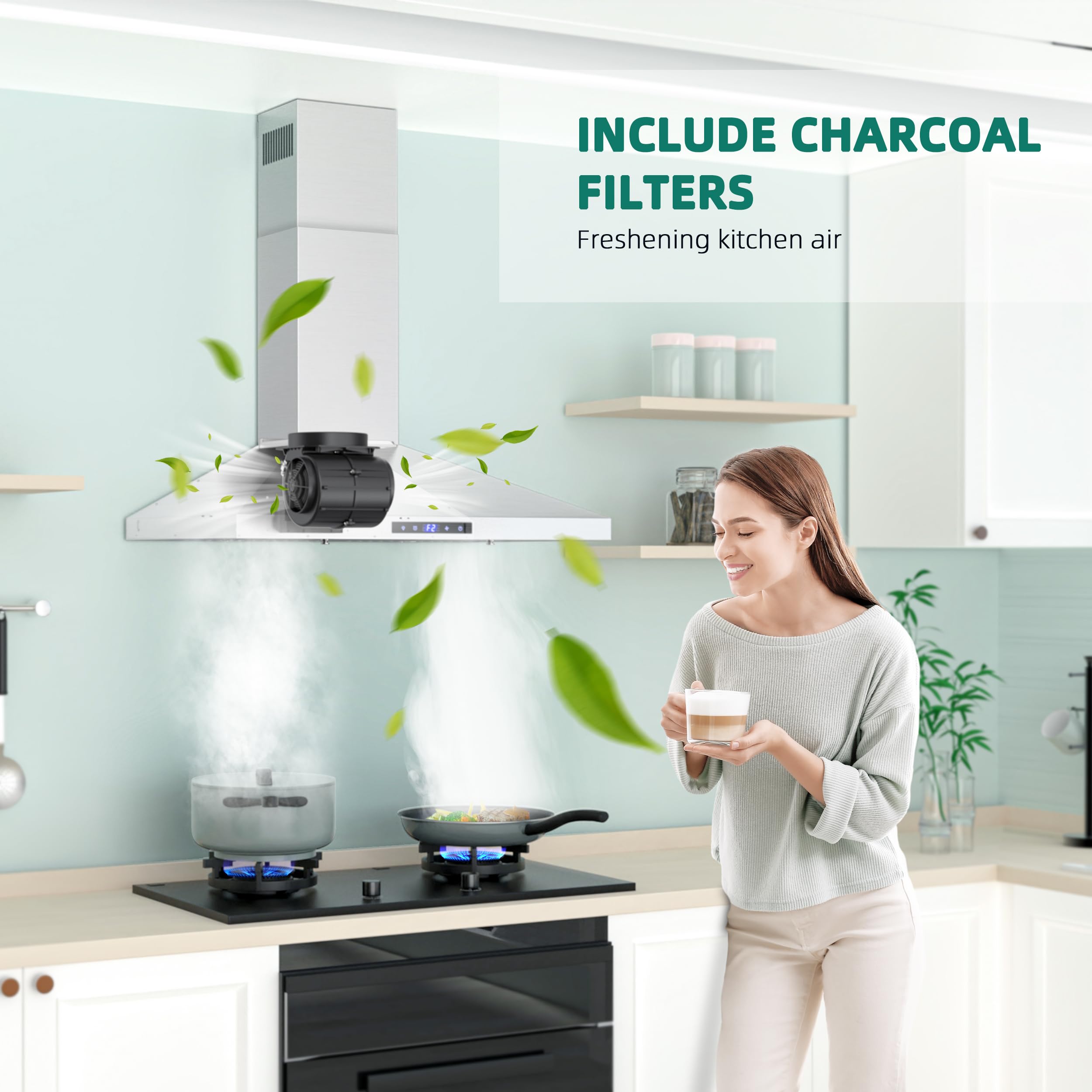 EASY TO INSTALL AND OPERATION: Easy to install with the instruction manual and the installation guide video. Range hood 30 inch with Touch panel control, simple operate and sensitive reaction. Vent hood fan are easy to turn on and off, Low/ Medium/ High Speed button suitable for different cooking method