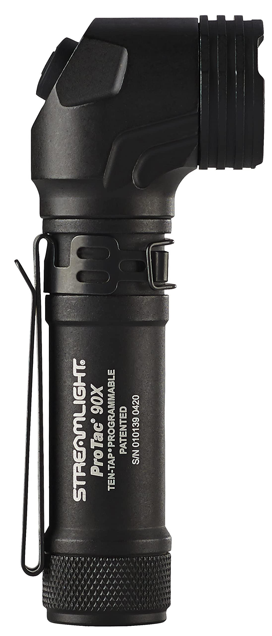 The Streamlight ProTac 90X right-angle tactical flashlight—88094 (ProTac 90X) and 88095 (ProTac 90X USB)—packs 1,000 Lumens, 7,350 Candela, and a 171-Meter beam distance into a compact EDC body designed for duty, rescue, and everyday carry. Its right-angle head keeps the beam where you need it and enables hands-free use when clipped to MOLLE, belts, or harnesses, while the low-profile form (about 4.39 Inches long; 4.4–4.9 Ounces) carries comfortably all shift. The multi-fuel platform runs on the SL-B26 protected Li-Ion rechargeable battery pack or two CR123A cells for power flexibility in the field; choose 88094 if you want the CR123A bundle with holster, or 88095 for the USB-rechargeable kit with SL-B26 battery + USB cord + holster. With up to 1.75 Hours on high (and long low-mode runtime), TEN-TAP programming, and rugged anodized aluminum construction, the ProTac 90X is a go-to right-angle EDC flashlight for first responders and prepared civilians seeking a 1000-Lumen, USB-rechargeable/CR123A multi-fuel light that’s compact, durable, and mission-ready.
