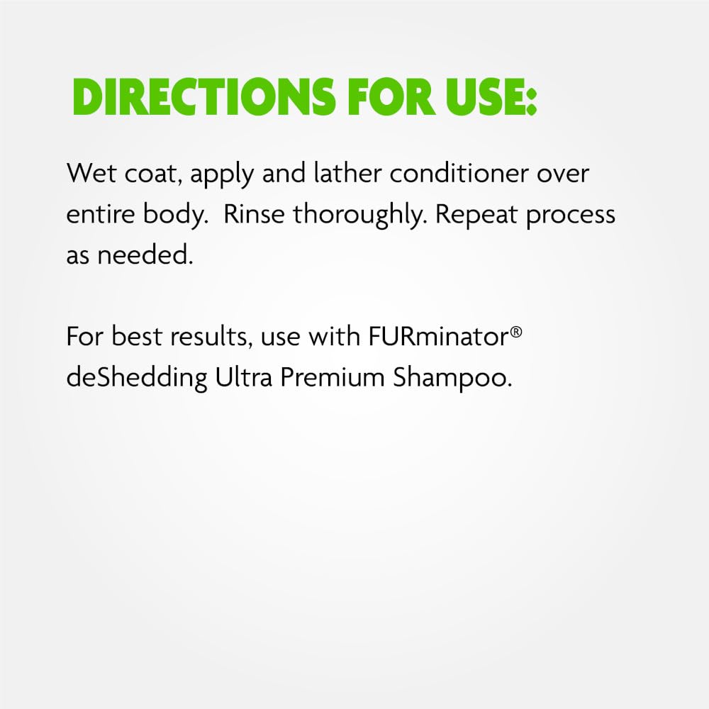 GROOMING CONFIDENCE: When used with the complete FURminator line of products, this bathing product offers a complete system for deShedding, cleansing and conditioning. For best results, use with FURminator deShedding Ultra Premium Shampoo.
