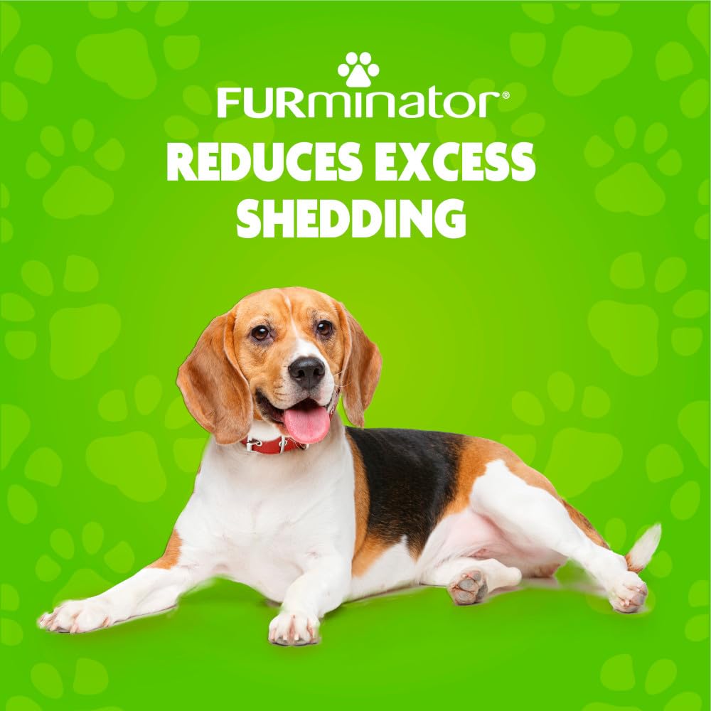 Take your grooming routine into your own hands by implementing the FURminator Ultimate Hair Reduction System™: Brush, deShed, Bathe and Maintain for grooming confidence in the comfort of your own home. Our deShedding tools, grooming tools and hair solutions offer a grooming regimen catered to any dog or cat. The FURminator deShedding Ultra-Premium Conditioner is formulated with multiple conditioning agents that, when used with our deShedding Tools and deShedding Shampoo, offers a complete system for deShedding, cleansing and conditioning. Enriched with Omega three and six fatty acids, this moisturizing formula helps reduce excess shedding and promotes healthy skin and coat for your pup. Plus, it’s formulated without parabens or chemical dyes. Even better, the Odor Capture 360™ Technology helps remove the wet dog smell – which means you’ll want to cuddle up to your fresh and furry friend. The FURminator Ultimate Hair Reduction System™ has four steps for a complete at-home grooming regimen. Regular shampooing and conditioning promote healthy skin and coat. To use, wet coat and apply conditioner over entire body. Repeat process as needed. For best results, use with FURminator deShedding Ultra-Premium Shampoo.