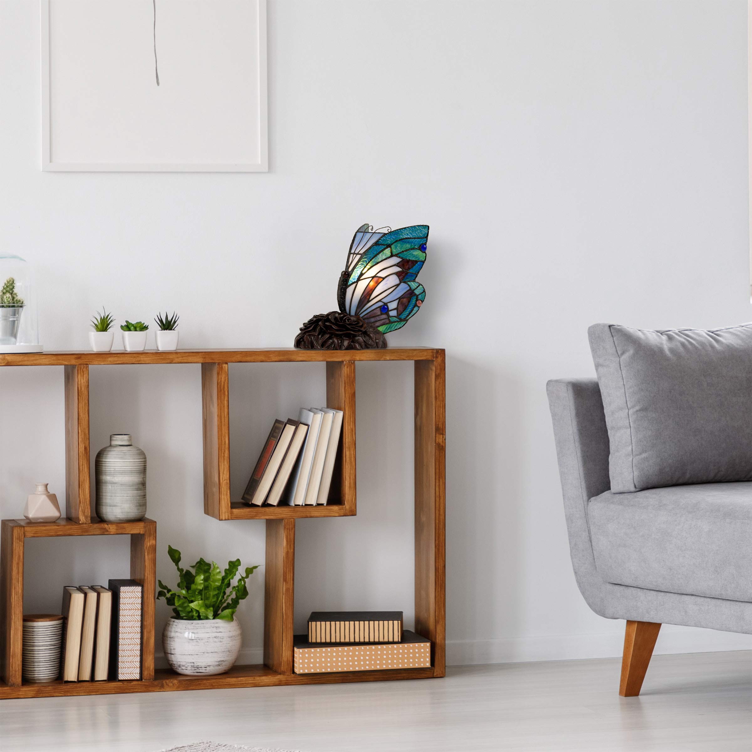 Add the charm of colorful glass with the Tiffany Style Butterfly Table Lamp by Lavish Home. This beautiful desk lamp is handcrafted with 68 stained glass pieces and 8 cabochon accents to make each piece truly unique. When the reading lamp is lit up, the vibrant colors of the delicate pointed wings are artfully displayed, and when it is unlit, the colors will appear darker and more subdued. The UL listed LED desk lamp features a convenient on/off rotary switch and comes with a replaceable energy-saving candelabra style 4W LED lightbulb. This endearing vintage-look butterfly tiffany lamp is sure to provide a soft ambient glow that makes it perfect to use as a nightlight or as a delightful art accent for a side table or desk in your entryway, bedroom, living room, or office. IMPORTANT: Lavish Home is committed to providing the consumer with the absolute best price and value on all of our products. NOTE: This is an exclusive product of Lavish Home and ONLY Lamps by Lavish Home are GUARANTEED to be genuine. Avoid buying counterfeit products and transacting with unauthorized sellers.