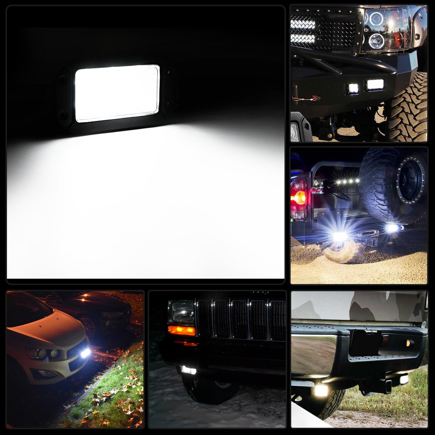 Specification: LED Power: 18W (6 x 3W High Intensity LED) Beam Pattern: Spot Beam Input Voltage: 9-30V DC (fits 12V, 24V vehicles) Working Lifespan: Over 30, 000 hours Working Temperature: -40~85 degrees Celsius LED Color Temperature: Pure White 6000K-6500K Material: Die-cast Aluminum Profile, High quality Led Chips, PC Lens Waterproof Rate: IP67; Waterproof, dustproof, quakeproof and anti-corrosive Certifications: CE, FCC and RoHS Applications: Off Road Lighting: Back Up Light, Reversing Light, Jeeps, 4x4, Cars, Motorcycles, ATV, UTV, SUV, Truck, Trailer, Forklift, Trains, Boat, Outdoor Lighting, etc. Other Lighting: Excavator, Dozer, Road Roller, Crane, Tractor, Harvester, Grain Drill, Fire engine, Rescue Vehicle, Camping, Mining, Construction Lighting, etc. Household Lighting: Garden, Backyard, Garage, Indoor Lighting. (Note: Use a voltage transformer/converter to convert the AC 110-120V to DC 12V for indoor use. ) Note: They are aftermarket parts. NOT D. O. T. approved. Do not use if D. O. T. is required. For off road use only. Before installing this product, please check your state/provincial and local/municipal laws and regulations.