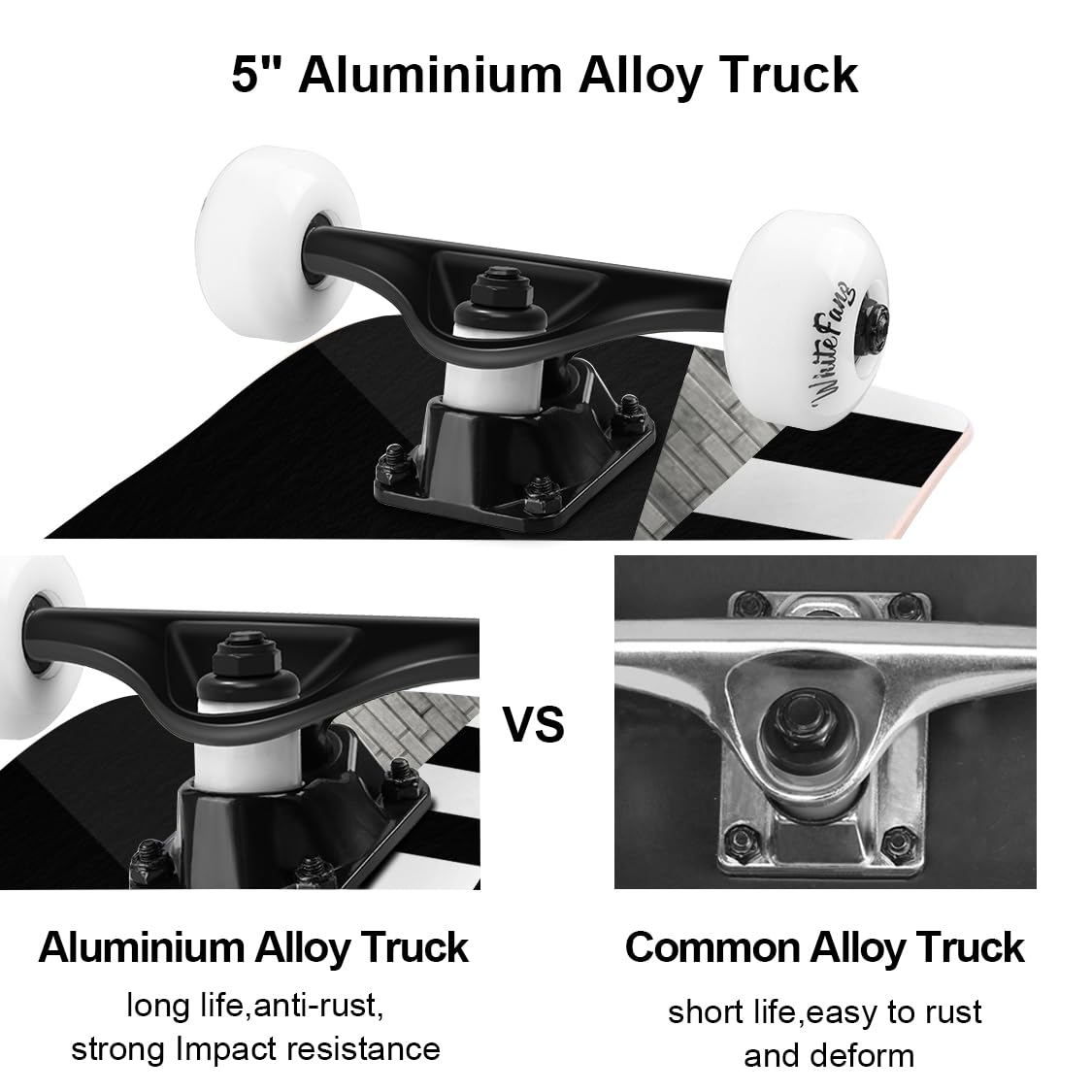 ๐น No Assembly Required: You'll receive a complete skateboard comes with 5" tough magnalium alloy truck which helps save your time and hassle of assembling. Ready to play out of the box!