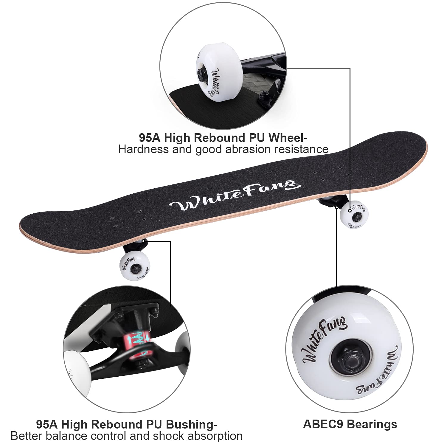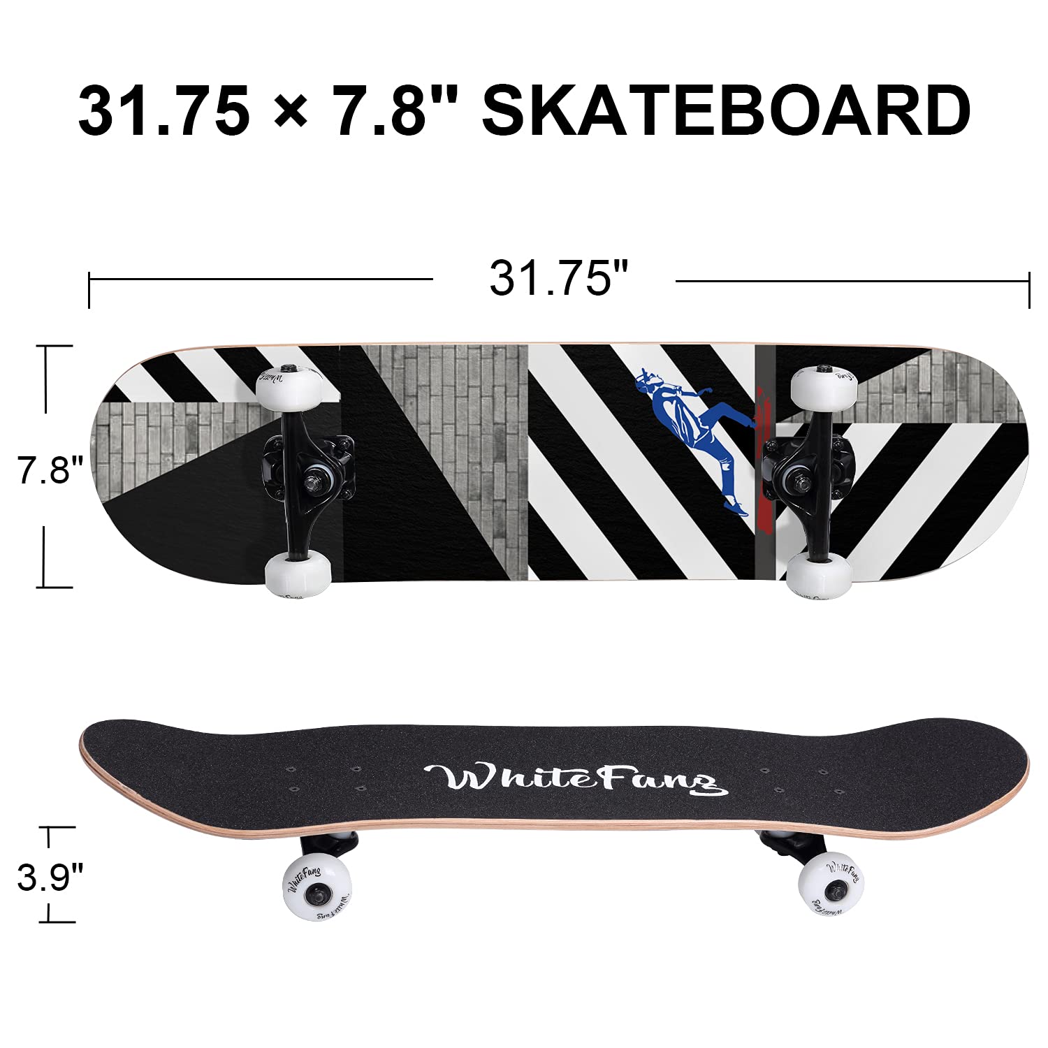 ๐น Durable & Sturdy: 31.75" longร7.88" wide full size double kick concave design with 7 layers hard Canadian maple deck, withstand the impact of skateboarding and learning new tricks. The max load is up to 220 lbs, durable and sturdy.