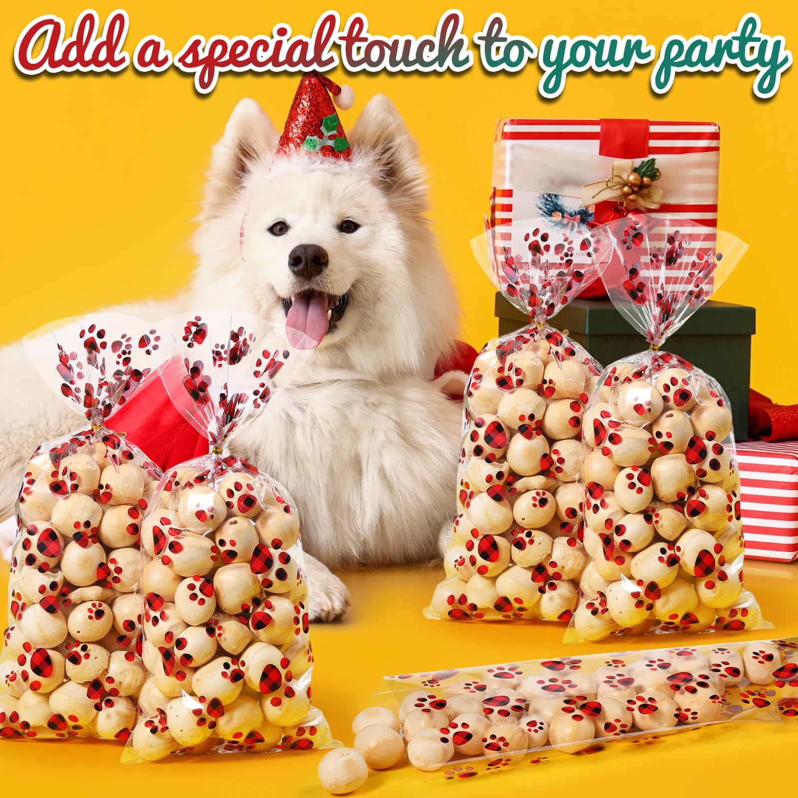 100 Pack paw print patterned cellophane bags heat sealable candy bags gift bags with 100 pieces silver twist ties for pet treat party favor Designs: Each plastic bag is 27.5 x 12.5 cm/ 10.8 x 5 inch, can hold a good amount of candy, then tighten the opening with a silver twist tie. Features: The heat sealable pet gift bags are printed with paw print pattern, these bags can decorate your pet party and make it funny. Wide usage: These paw print bags are suitable for party favors, candy bags, or other gift packaging. Specifications: Color: as the picture shown Material: clear OPP Bag size: 27.5 x 12.5 cm/ 10.8 x 5 inch Twist tie: 10 cm in length Package includes: 100 x Paw print patterned bags 100 x Silver twist ties