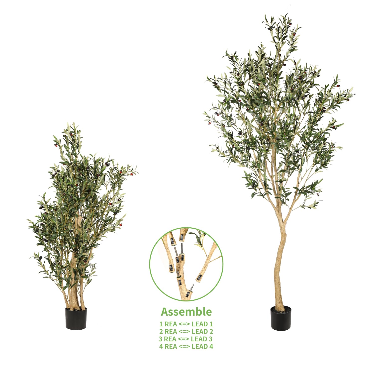 【Effortless Assembly & Adjustable Branches】Setting up this fake olive tree is quick and simple. You just need to align and insert according to the label numbers corresponding to the branches and trunks. Realead realistic olive tree outfitted with adjustable strong inner metal wires,the flexible branches can be shaped to achieve a fuller look or customized to fit your space perfectly. Craft your ideal olive tree to decor your home