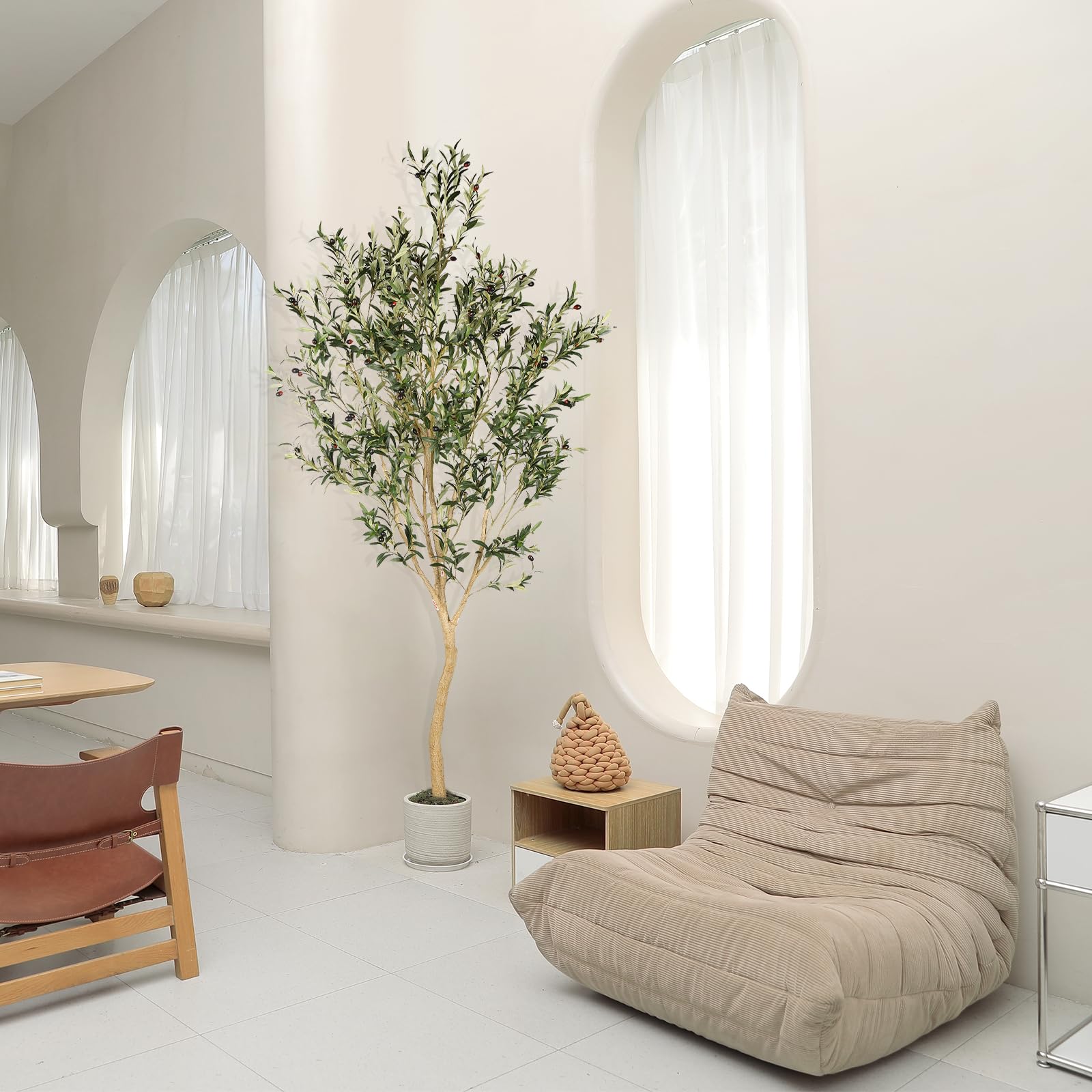 【Versatile Placement for Home Decor】This tall 8 feet indoor olive tree suitable for living room, shop, bedroom, office and other places. Perfect for home, office, shop, entryway, hallway, classroom, shopping mall and many commercial places. It's also a great gift for Christmas, Thanksgiving, housewarming, for friends or family. You’ll wish you found this years ago