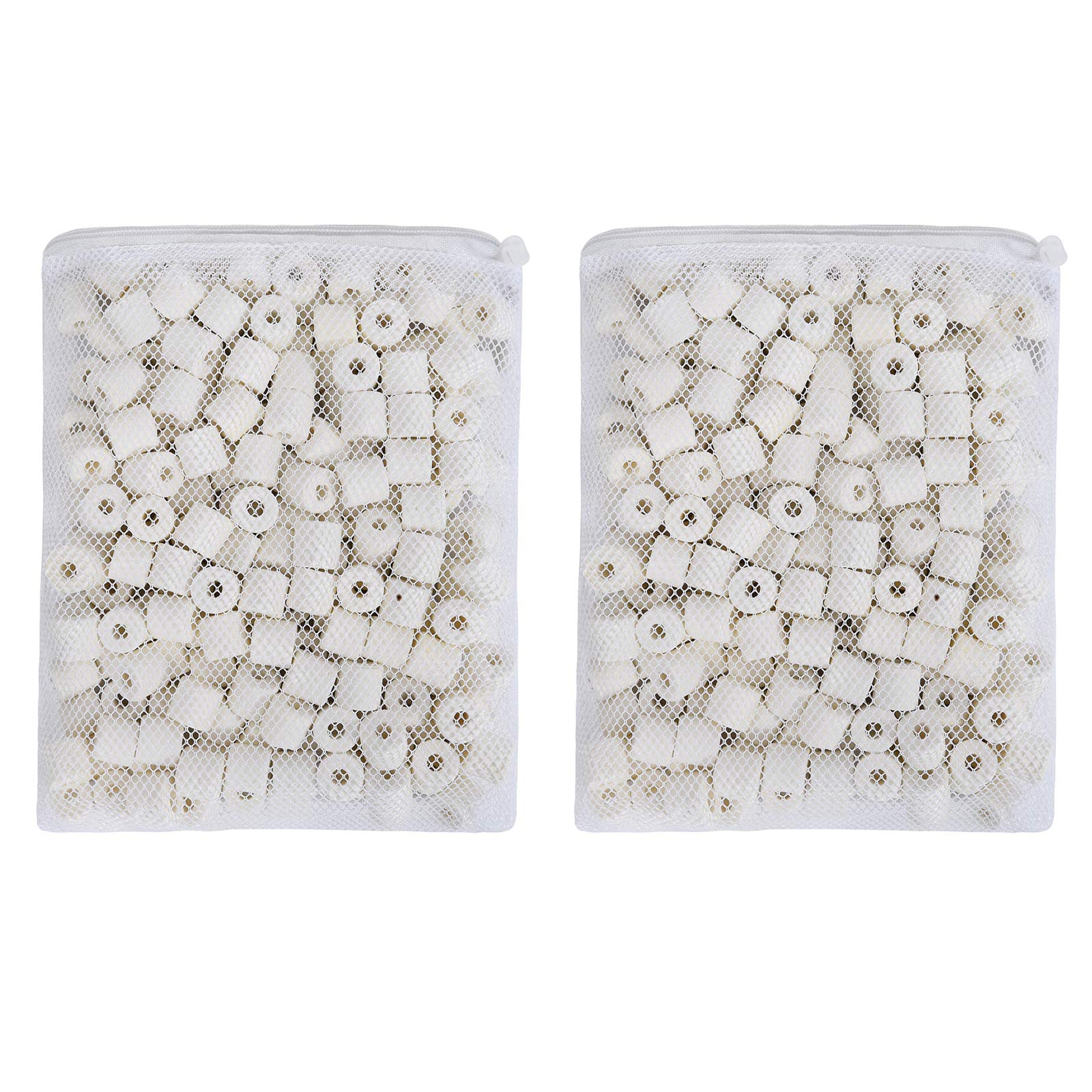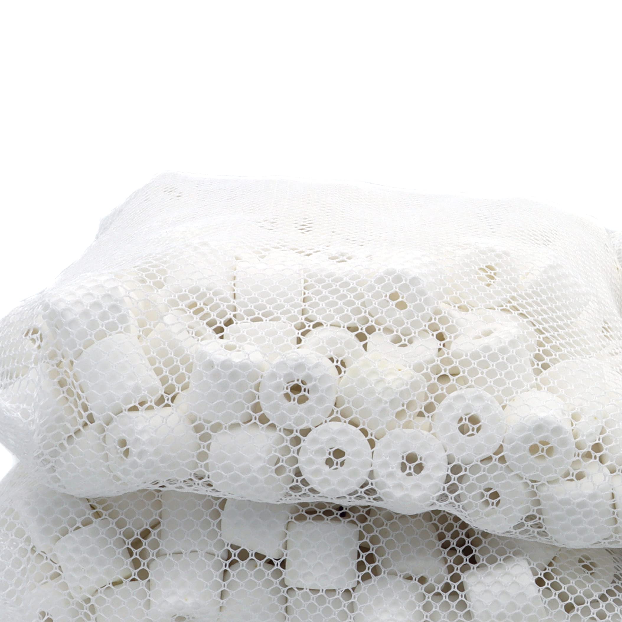 6 lbs in 6 mesh bags. Size of ceramic ring: 1/2" x 1/2".