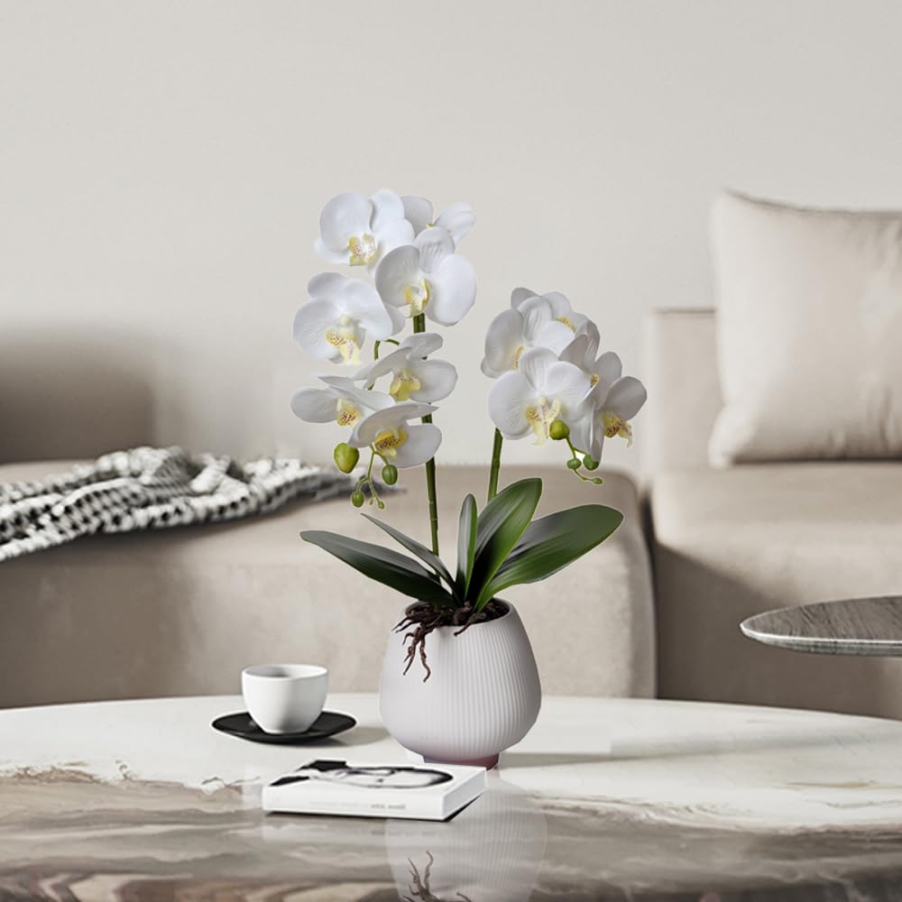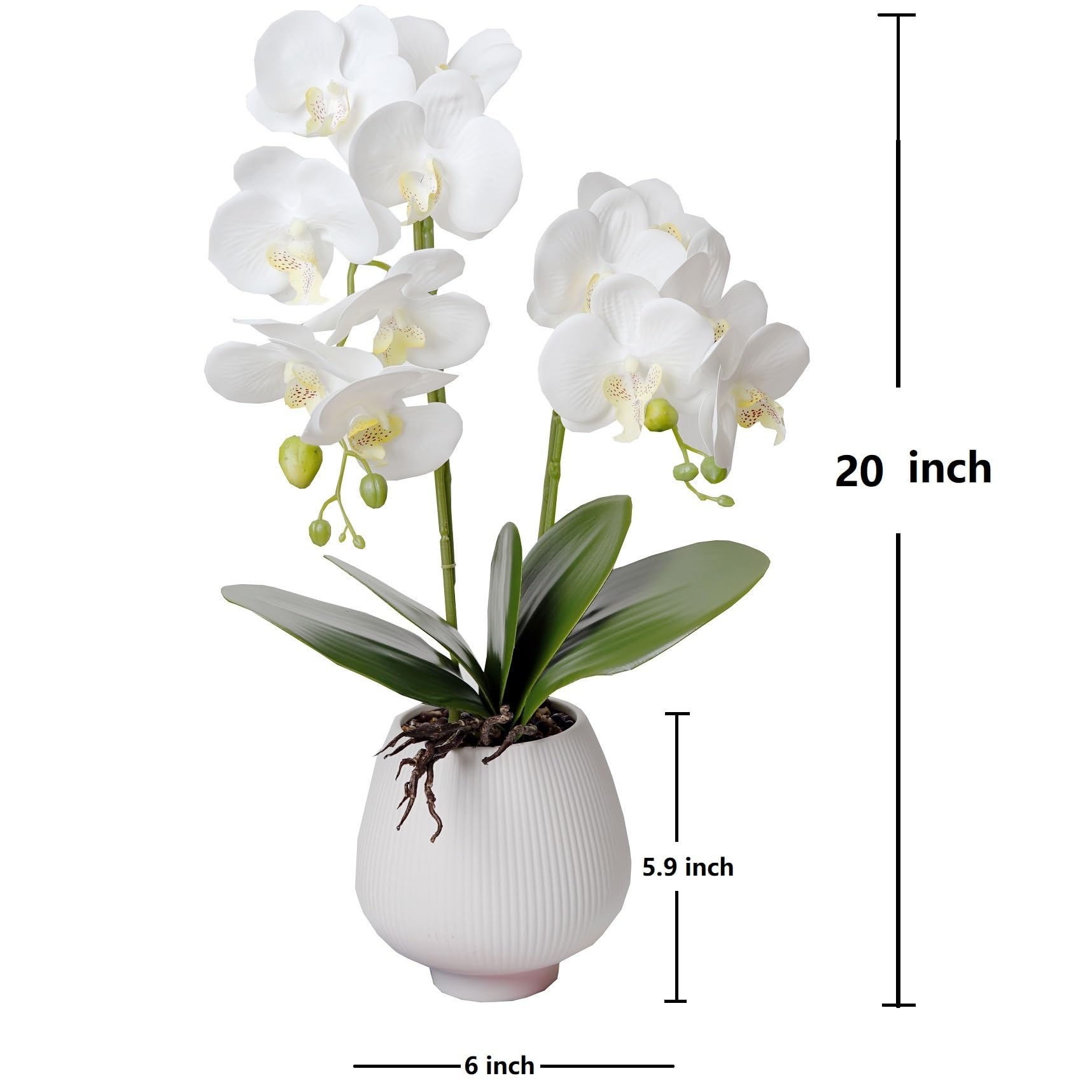 Material: Modern simplicity style pot is made of ceramics. White phalaenopsis faux flower orchid plant made of PU. All Artificial flowers look beautiful and lifelike.