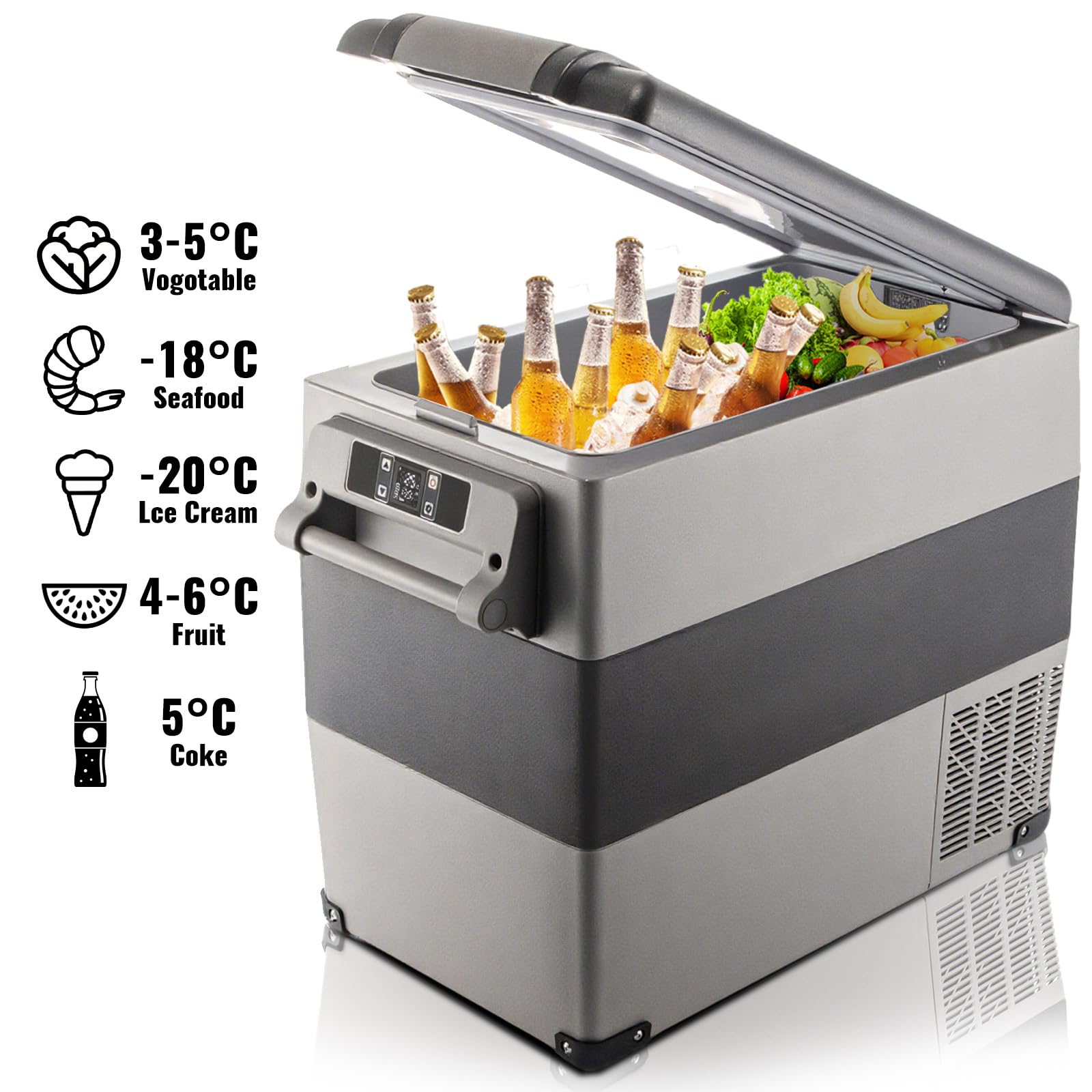 Efficient Refrigeration: With Compressor refrigeration technology, this 12v car freezer could achieve fast cooling from -20℃ - 20 ℃/-4 ℉ - 68 ℉, keeping your food fresh. Perfect for travel, picnic, barbecue, camping, and parties.