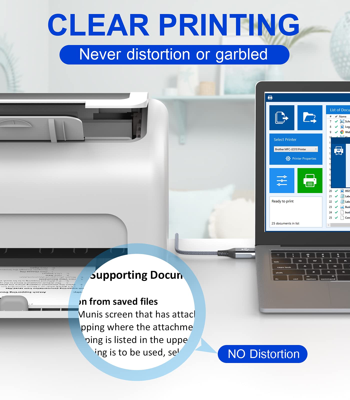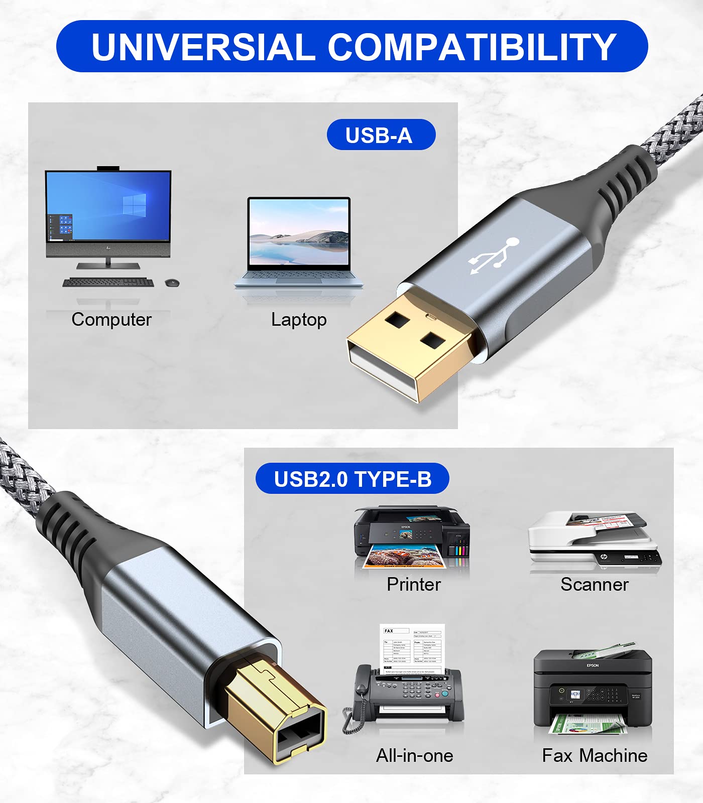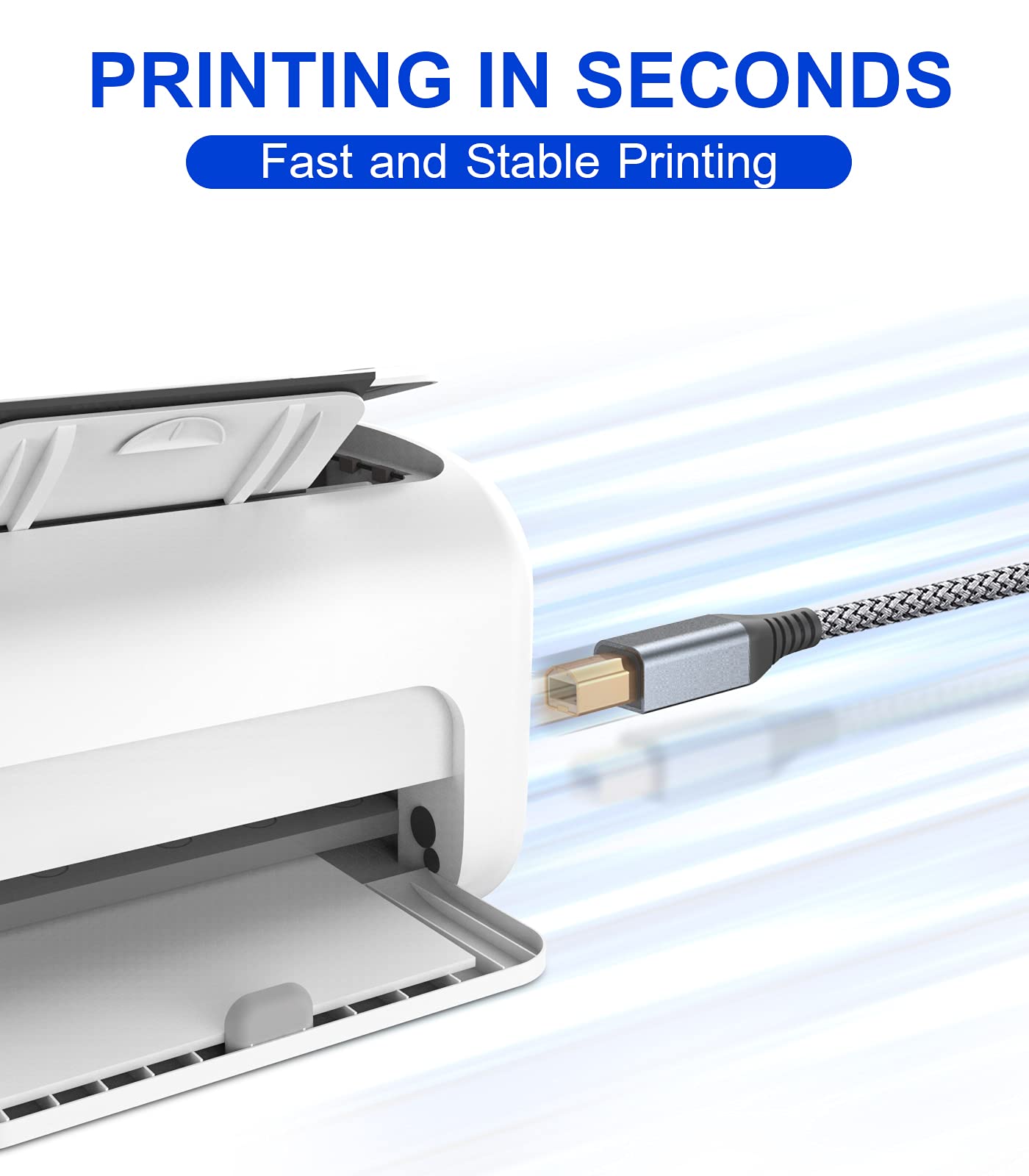 [Nylon Tangle-free Design]: Tangle-free Nylon Braided Design, this USB 2.0 Printer Cord is far more dependable than others in its price range. Premium nylon braided cable adds additional durability and tangle free.