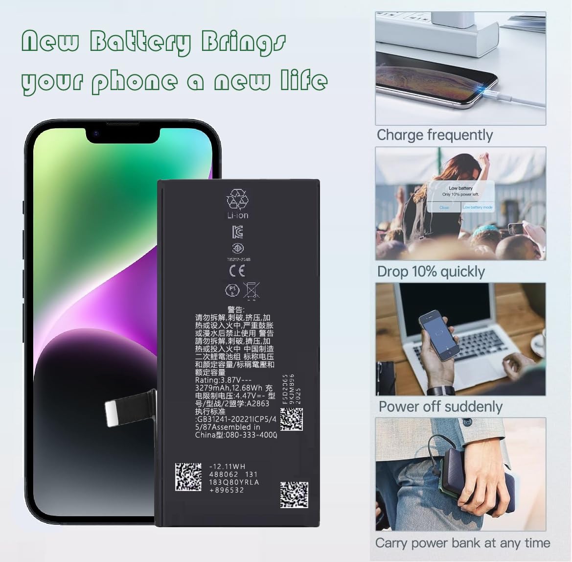Strong endurance: Adopting advanced lithium-ion technology, it provides long-lasting power support, ensuring that your cell phone is always fully charged in daily use without frequent charging.