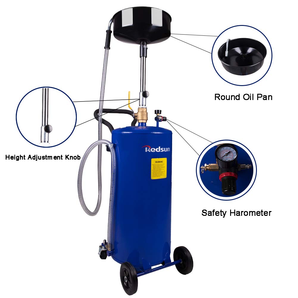 Large 20-Gallon Capacity with Preset Air Regulator: Designed for high-volume use, this oil drain tank can collect waste oil from 8-10 cars per fill. Ideal for auto shops, factories, and home garages—great for draining, transferring, and evacuating oils & fluids with minimal downtime