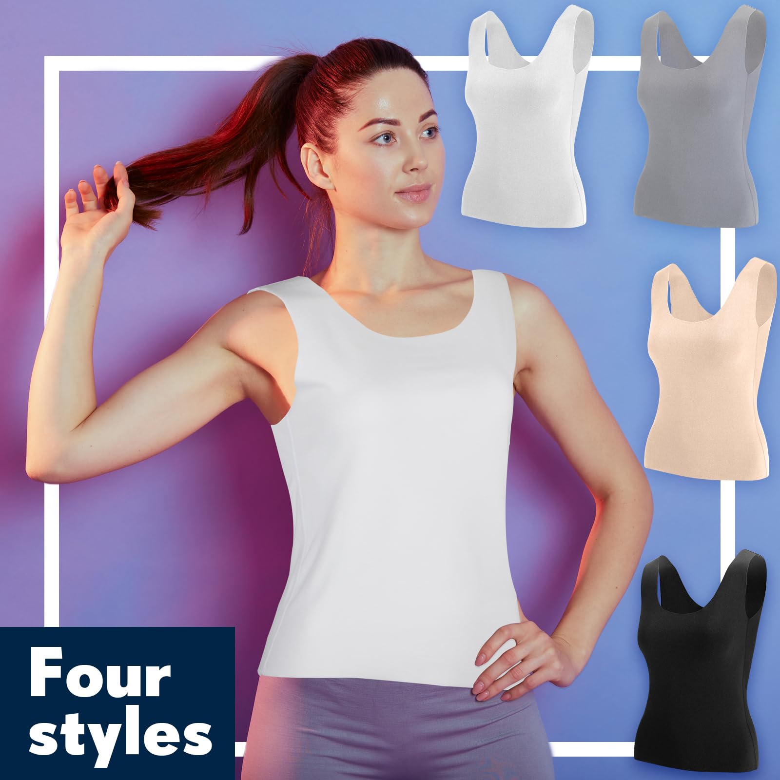 Choose from 4 Different Colors: the tank tops for women come in black, white, nude, and light gray, so you can easily match them with your daily clothing; Please see the sizes in the picture provided