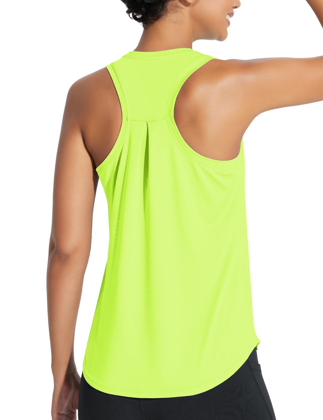 Racerback tank tops cut for full range of movement, it creates a sexy look on back and the open back and slightly loose fit creates a breezy feel with more cooling as your run heats up.