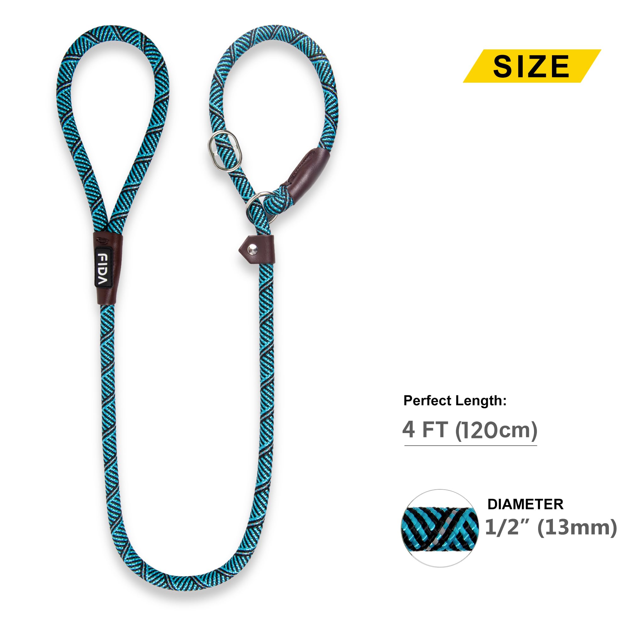 【STRONG & LIGHTWEIGHT】- These Premium Slip Leads for dogs are made of high strength nylon rope, super durable metal ring, and the knots bound with leather cover. 1/2” thick rope provide maximum durability and comfortable grip