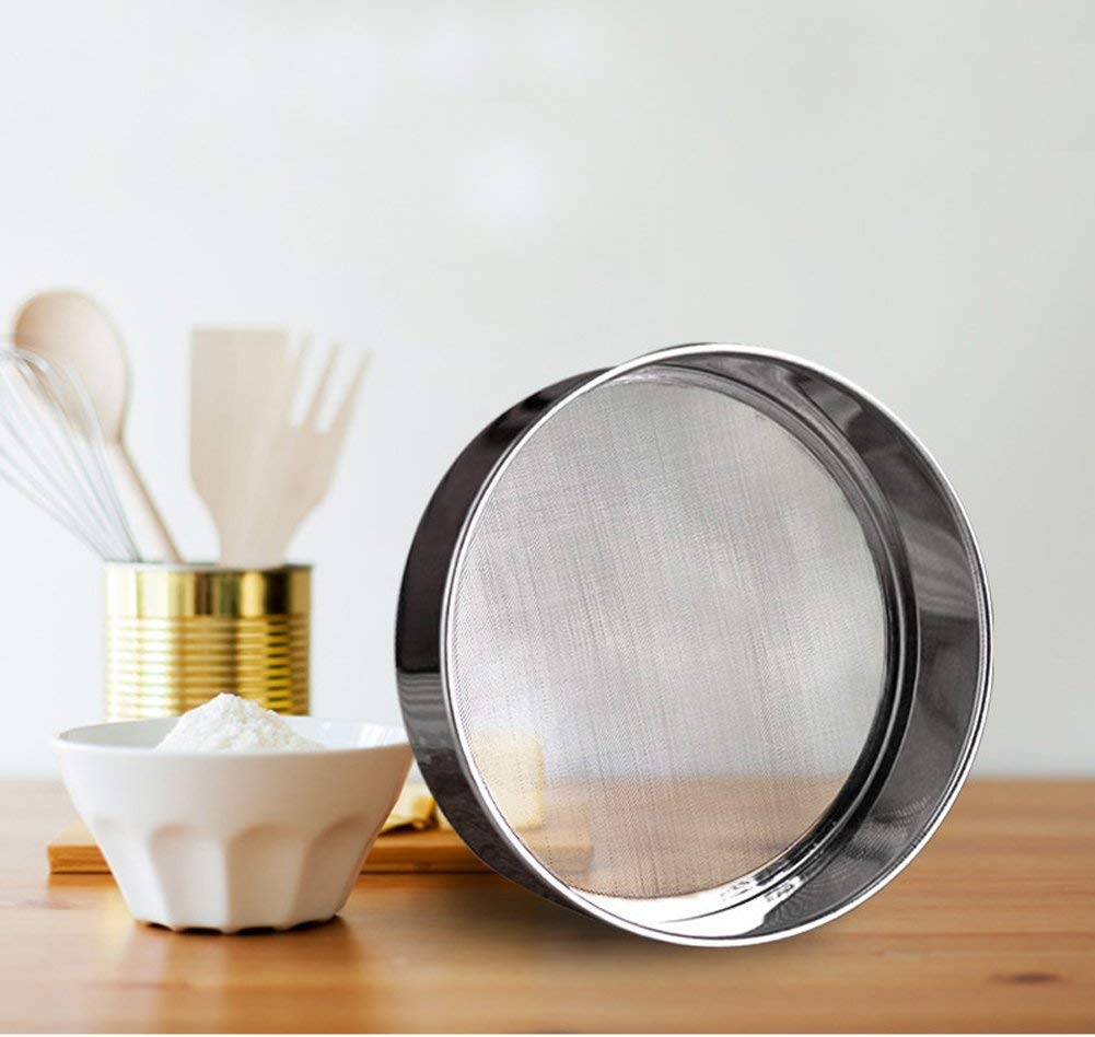 3.Professional samll tamis: works great for regular flour, home miller,crushed spices and confectioners' sugar, for sifting the bran out of whole grain flours;Sieve pastes and purees for smoother, creamy sauces and soups; no more lumps .