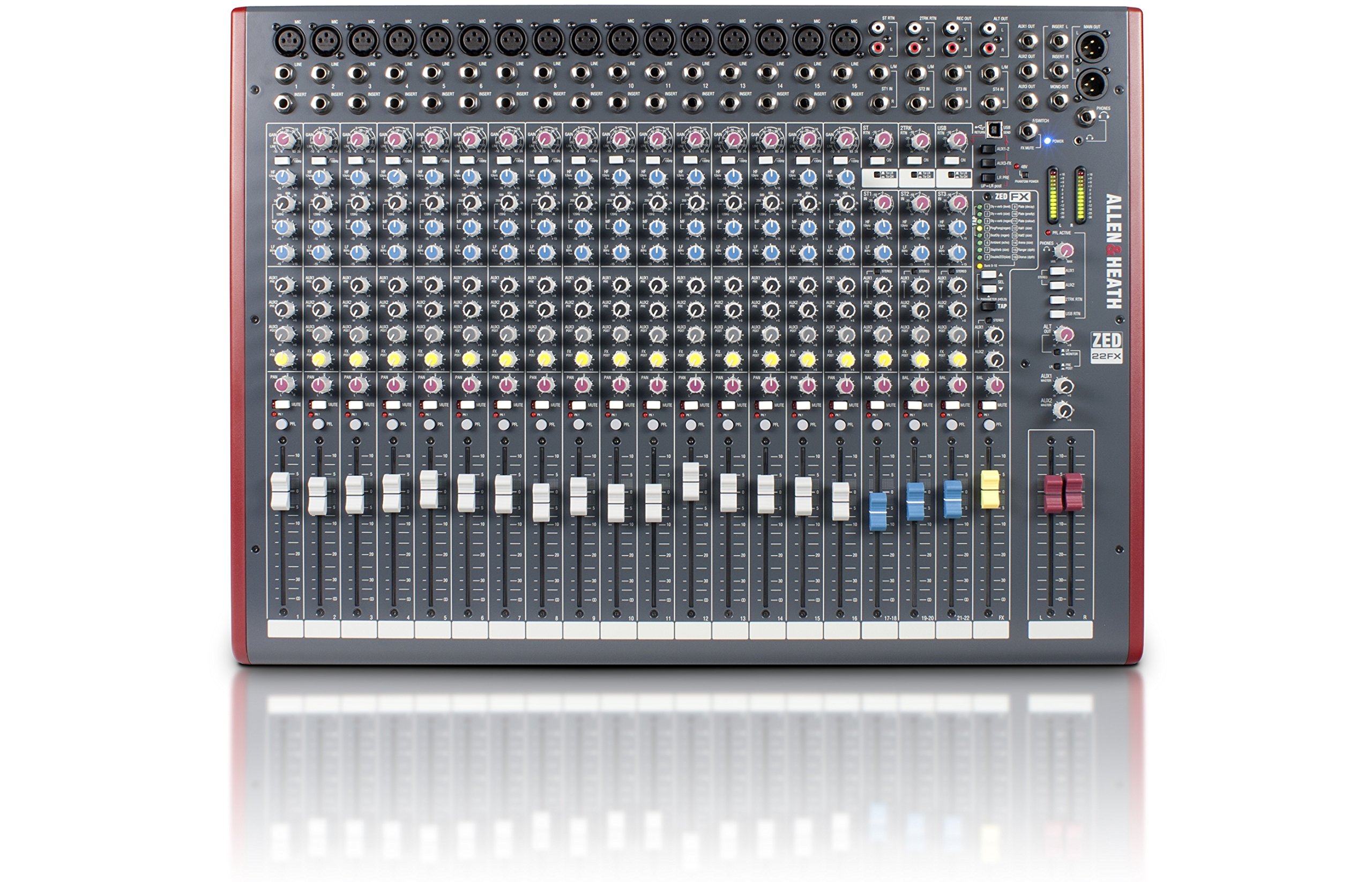 Built-in Effects and It's Record Ready Too! A solid mixer with great effects! The ZED-22 FX is the perfect center to your live rig — and it's also ready to rock in the studio. First of all, the Allen & Heath ZED-22 FX gives you all the connections you need to hook up a small band, duo, or solo performer. Thanks to the 16 mic/line channels you can connect all the mics and DI boxes you need. Plus you've got three dual stereo channels available, each with a gain and 2-band EQ control. The FX in the name, though, is what takes the cake. Here, you can get tweaky with 16 separate effects for nailing the perfect, polished live sound with the ZED-22FX. The record-ready Allen & Heath ZED-22 FX will be the centerpiece to your live sound rig!Tons of power under the hood Those guys and gals at Allen