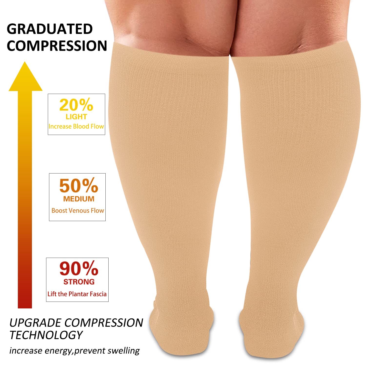 【Easy Care & Customer Service】- Our plus size compression socks are easy to care for. Just wash them with like colors and tumble dry on low. If you have any question Please contact our customer support. Always select the right size to buy, by measuring your calf at the widest point with muscle relaxed to get accurate size.