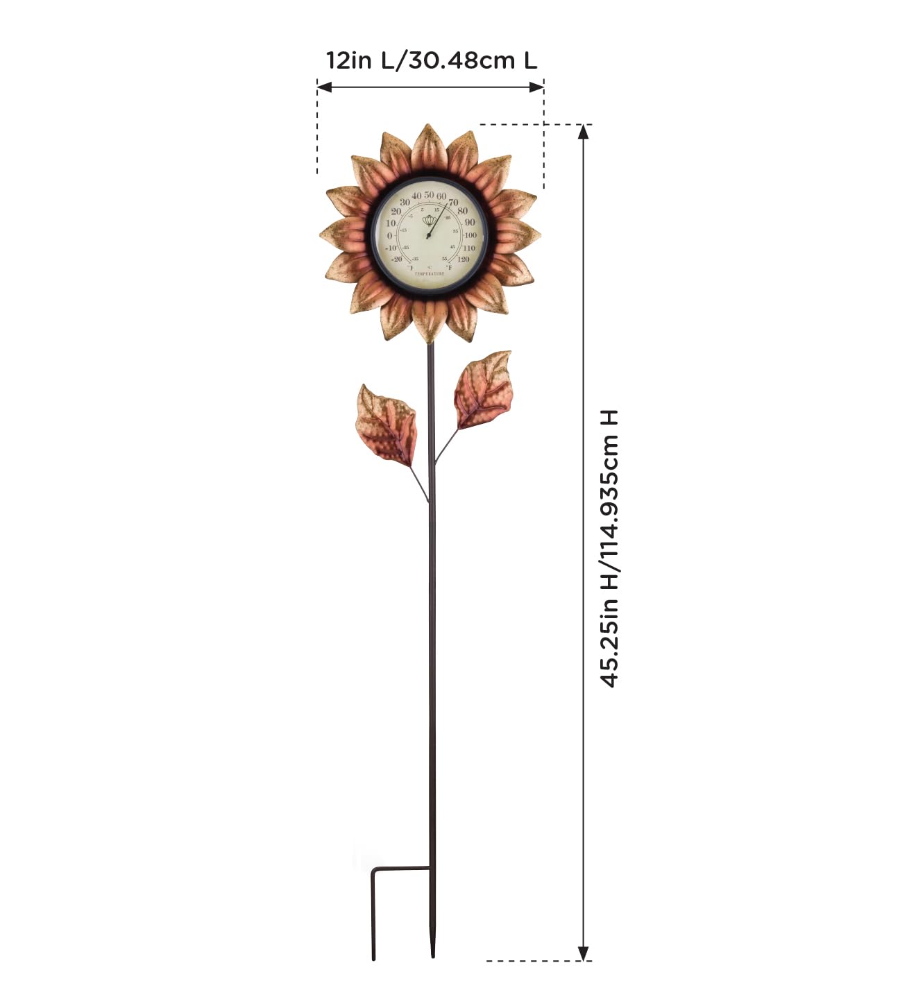 Durable & Weatherproof: Built to withstand the elements, this metal garden thermometer is crafted from high-quality materials, ensuring long-lasting durability and reliable performance.