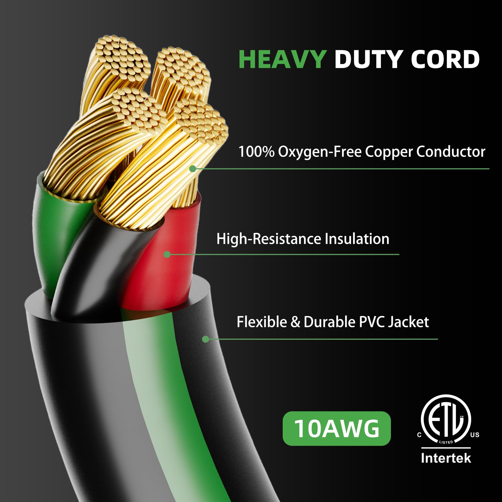 【ETL Listed & Trusted Brand】 4 prong 30 Amp generator cord has passed ETL certification. We stand behind our product with a 3-year replacement and return guarantee, alongside free lifetime technical support. Count on our extension cable to ensure your equipment keeps running even during power outages.
