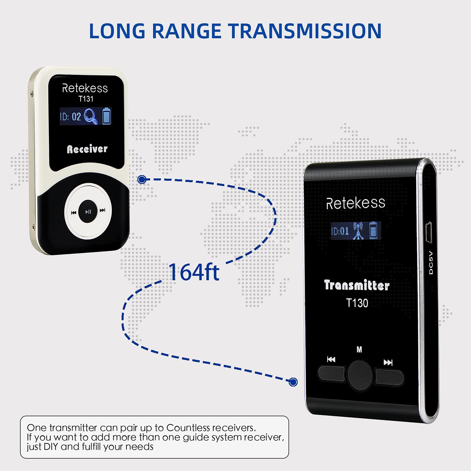 Long communication distance; Retekess TT126 two way tour guide system transmission distance of the wireless communication system is about 280m/919ft in open air; make sure you are in barrier-free transmission environment