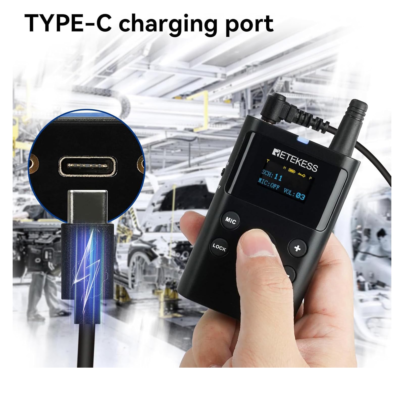 Adjustable microphone gain;the microphone gain of Retekess TT126 tour guide system with two way audio can be adjusted from 1 to 7 levels; during a factory tour; noise levels can vary from one area to another; and the adjustable microphone gain ensures that everyone on your team hears clearly