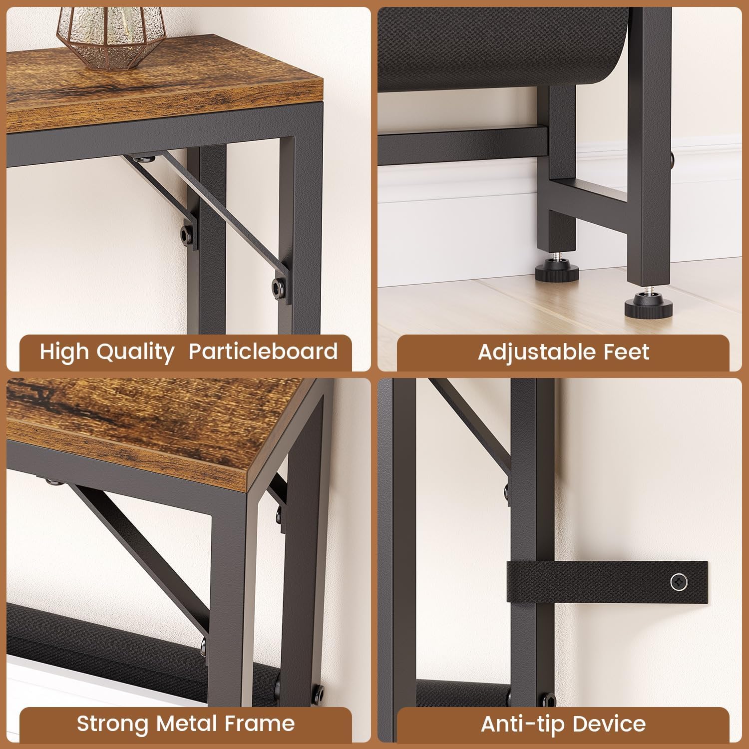 [Sturdy and Stable] The console table is made of engineered wood and metal frame, with high load-bearing capacity. The adjustable feet at the bottom protect the floor from scratches and make the table more stable. At the same time, the anti-tip straps ensure additional safety.
