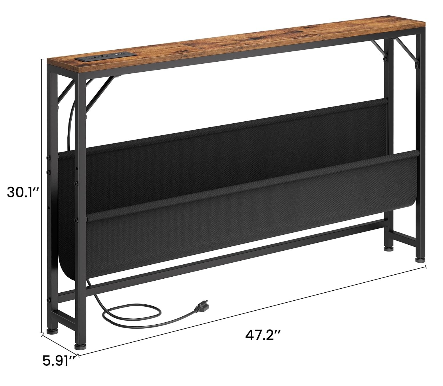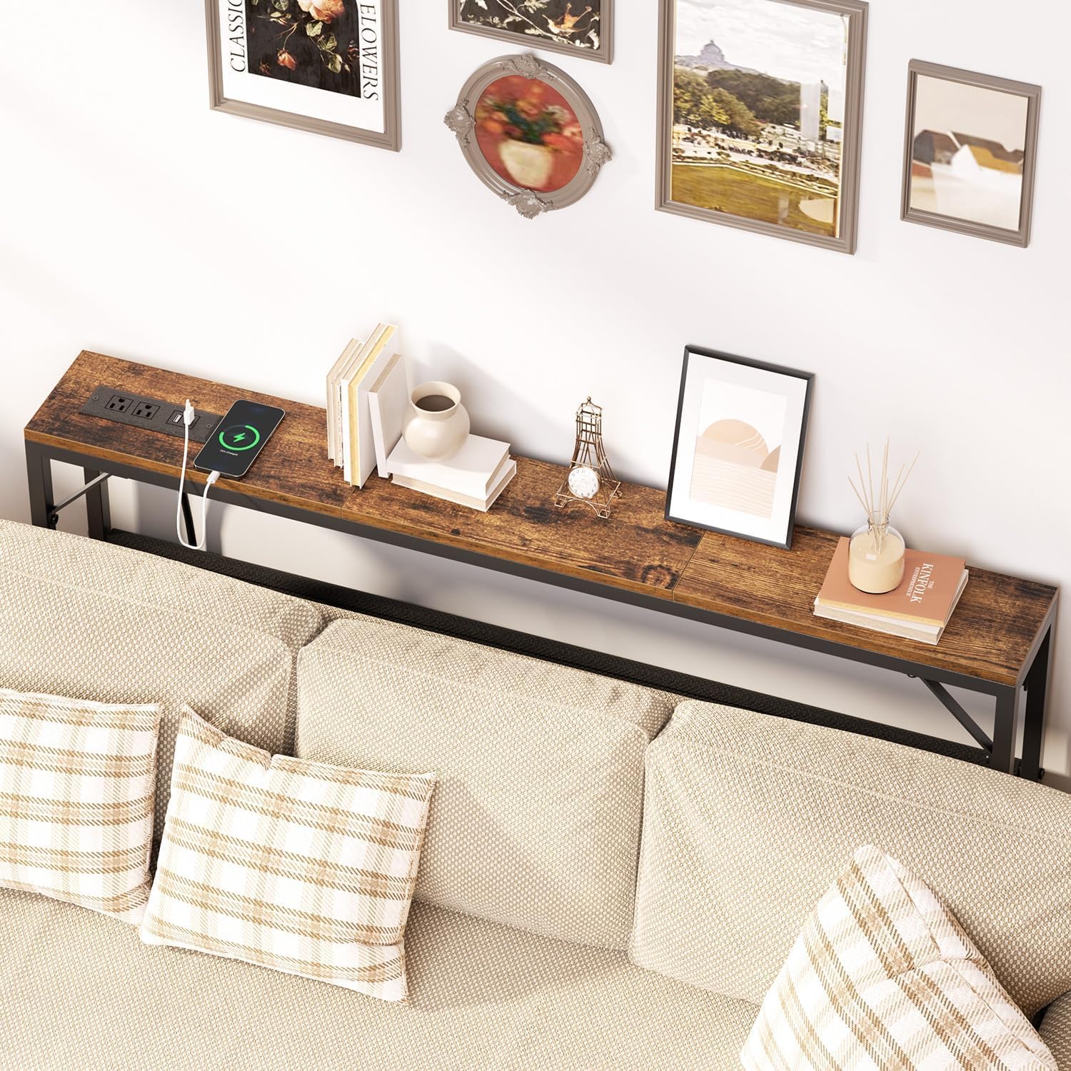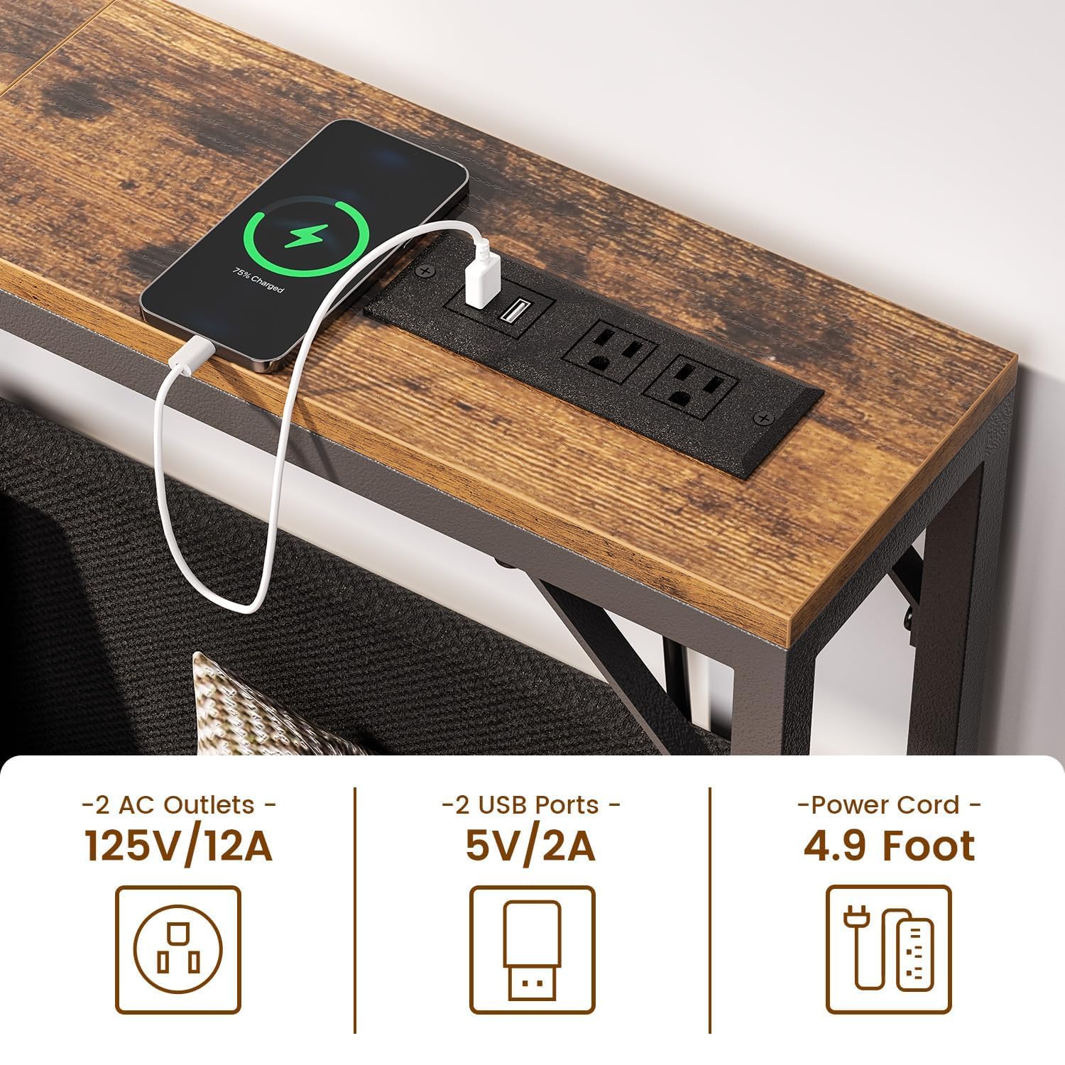 [Console Table with Charging Station] Don't worry about charging anymore! This sofa table is equipped with a charging station. It includes 2 standard 125V/12A AC power sockets, 2 5V/2A USB ports and a 4.9-foot power cord. It can charge multiple products such as mobile phones, tablets, and electronic watches simultaneously.