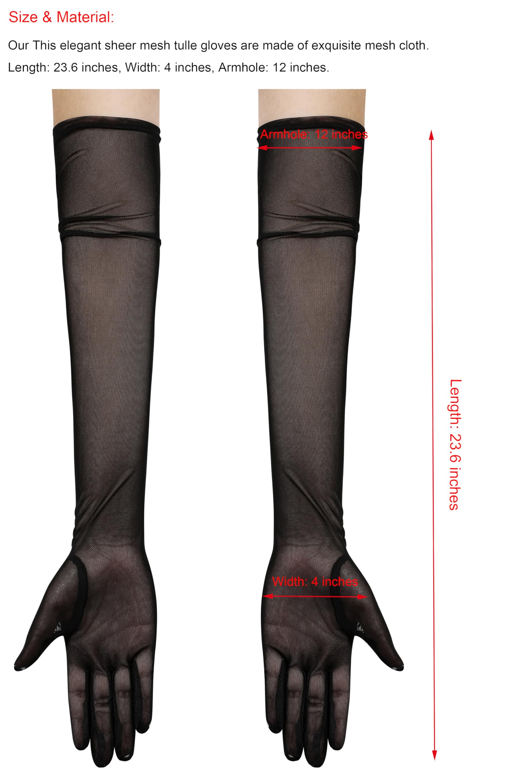 💕Material:This elegant sheer mesh tulle glove is mainly made of Spandex Mesh, with fine workmanship, beautiful appearance, classic and versatile color, soft feel, comfortable and breathable to wear, giving you a comfortable wearing experience! One size fits most people.