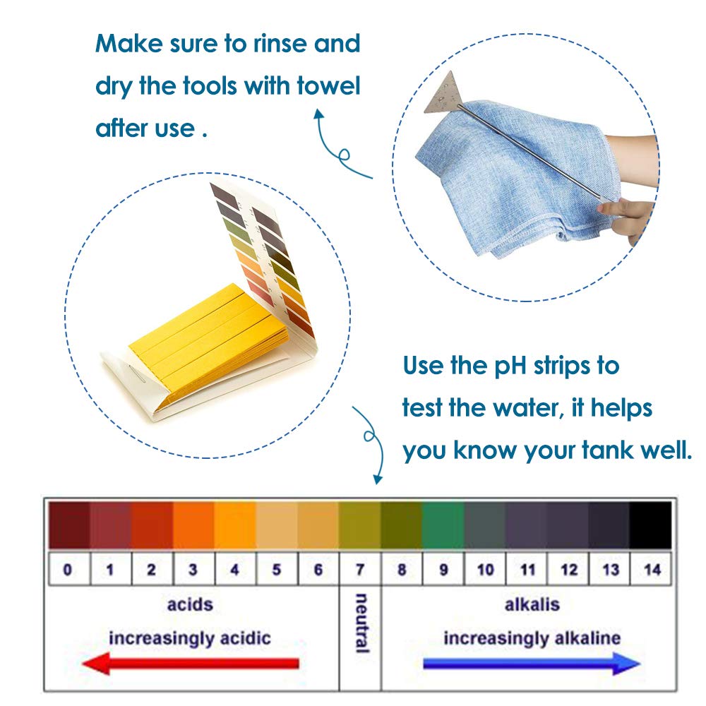 Service warranty - Your satisfaction is our lifetime goal. We are committed to providing you with the most satisfactory products. The package includes 5 aquascape tools with 100 strips PH Tester. If you discover some parts missing when you receive it,contact us,we promise to resend it.